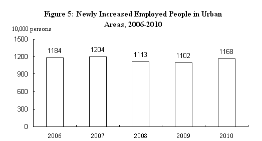 In 2010, the newly increased employed people in urban areas in