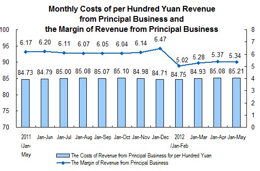 The revenue from principal business of state-owned and state-holding industrial enterprises grew to 9,602.2 billion yuan, increased 6.9 percent, year-on-year, the costs of revenue from principal business for per hundred yuan stood at 82.51 yuan, with the margin hit 5.83 percent, that of collective-owned enterprises reached 447.2 billion yuan, increased 9.8 percent, the costs of revenue from principal business for per hundred yuan stood at 85.24 yuan, with the margin hit 6.51 percent, that of joint-stock enterprises reached 19,730.5 billion yuan, increased 13.6 percent, the costs of revenue from principal business for per hundred yuan stood at 84.93 yuan, with the margin hit 5.46 percent, that of foreign funded enterprises, and enterprises funded from Hong Kong, Macao and Taiwan achieved 8,606.4 billion yuan, increased 6.5 percent, the costs of revenue from principal business for per hundred yuan stood at 86.43 yuan, with the margin hit 4.96 percent, and that of private enterprises gained 10,123.6 billion yuan, increased 19.3 percent, the costs of revenue from principal business for per hundred yuan stood at 86.27 yuan, with the margin hit 5.43 percent.
