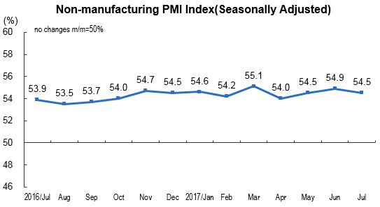 China's Non-manufacturing PMI was 54.5 Percent in July