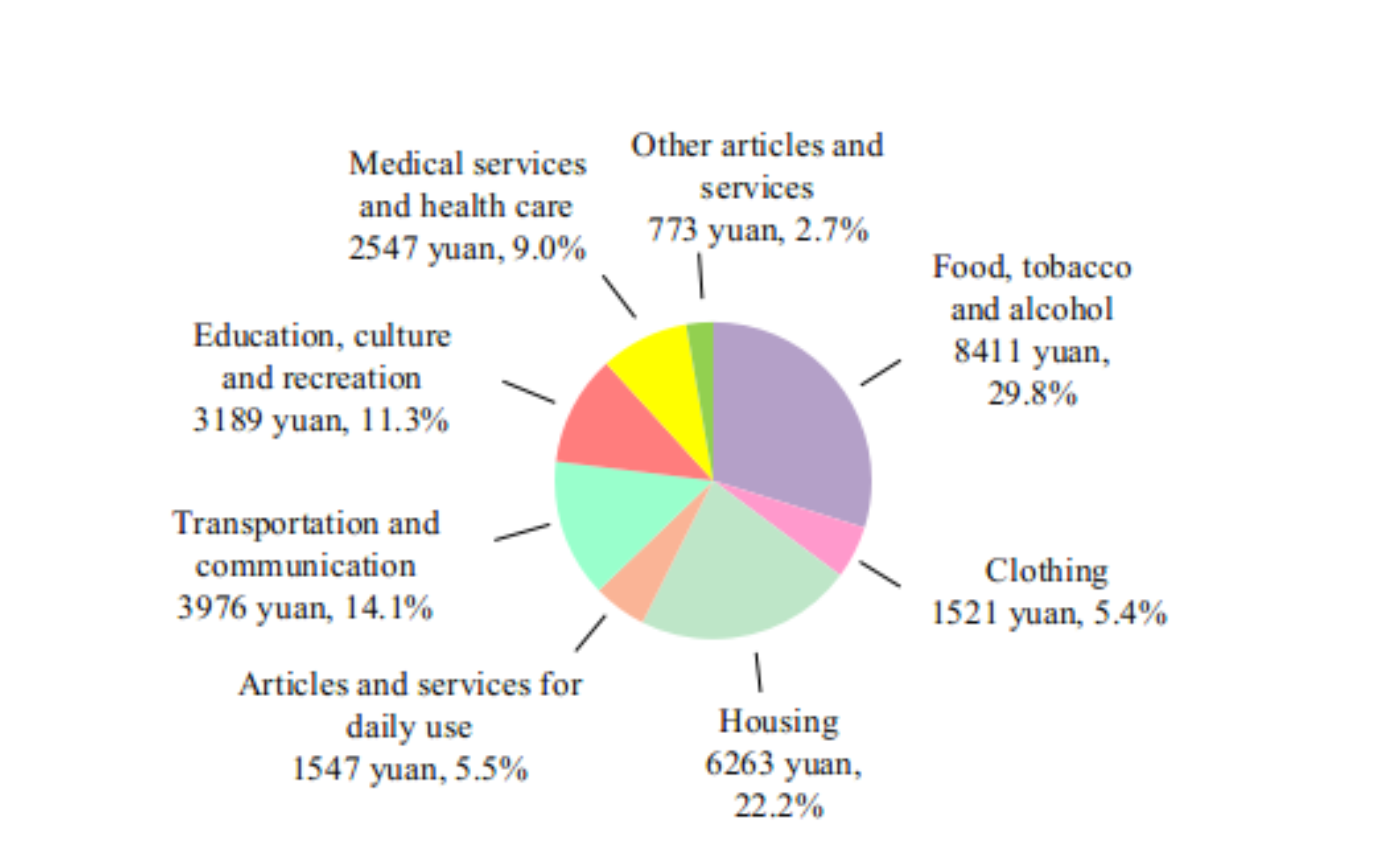 [64] The consumption expenditure on services refers to the spending by households on services for daily lives including catering, clothing and footwear processing, housing, family, transportation and communication, education, culture and recreation, medical services and others.