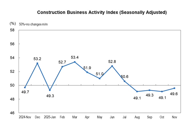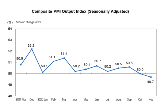 In November, the Composite PMI Output Index was 49.7%, a decrease of 0.3 percentage points from the previous month.