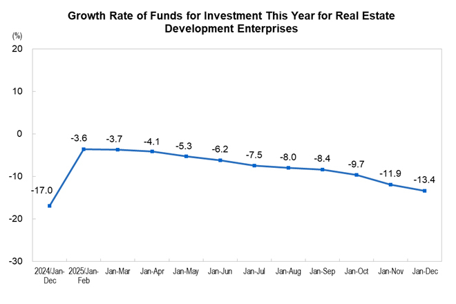 In 2025, the floor space of buildings under construction by real estate development enterprises was 6,598.90 million square meters, a year-on-year decrease of 10.0%. Specifically, the floor space of residential buildings under construction was 4,601.23 million square meters, down 10.3%. The floor space of buildings newly started was 587.70 million square meters, down 20.4%. Specifically, the floor space of residential buildings newly started was 429.84 million square meters, down 19.8%. The floor space of buildings completed was 603.48 million square meters, down 18.1%. Specifically, the floor space of residential buildings completed was 428.30 million square meters, down 20.2%.