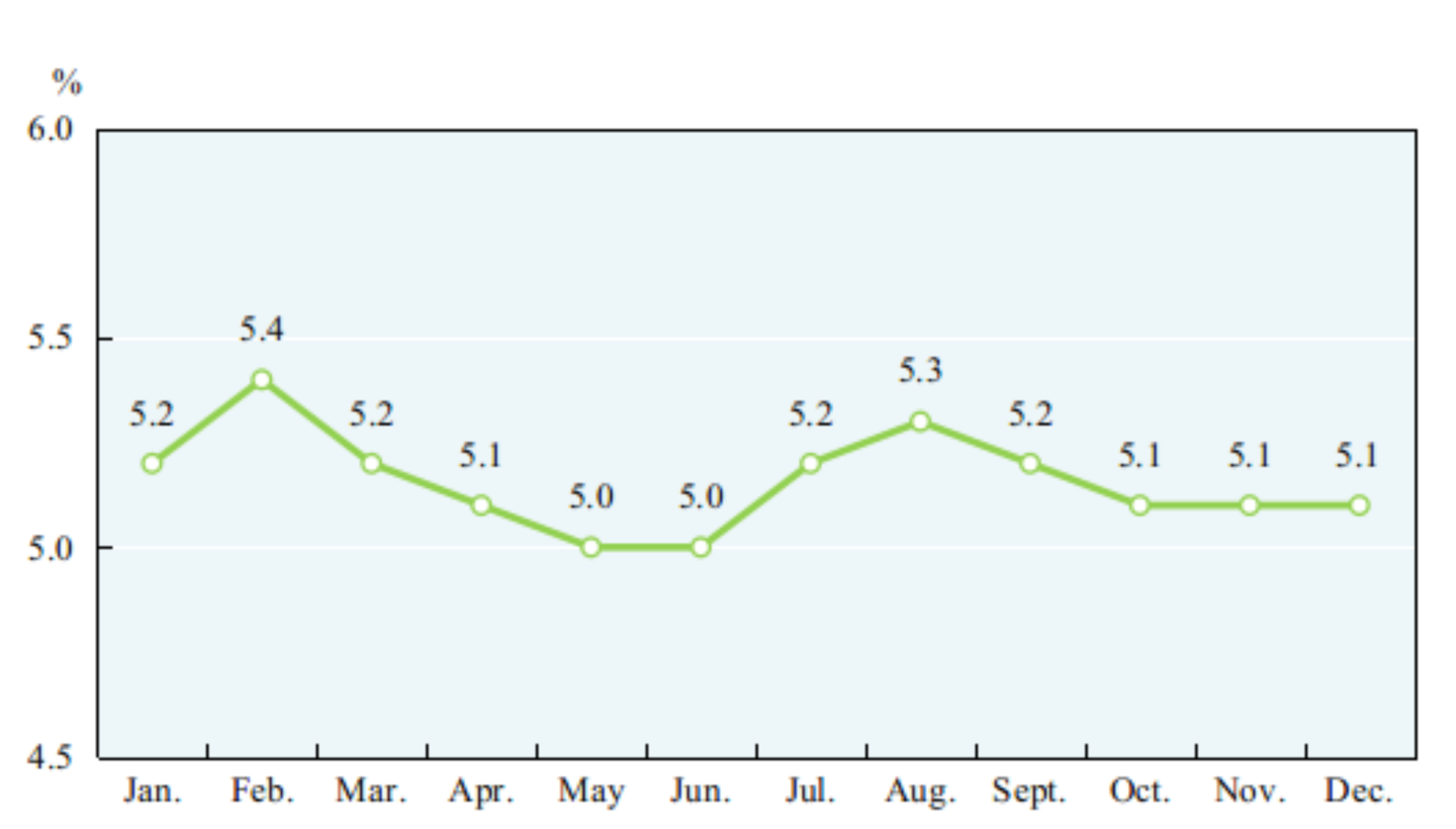 Figure 5:Monthly Changes of Urban Surveyed Unemployment Rate in 2025