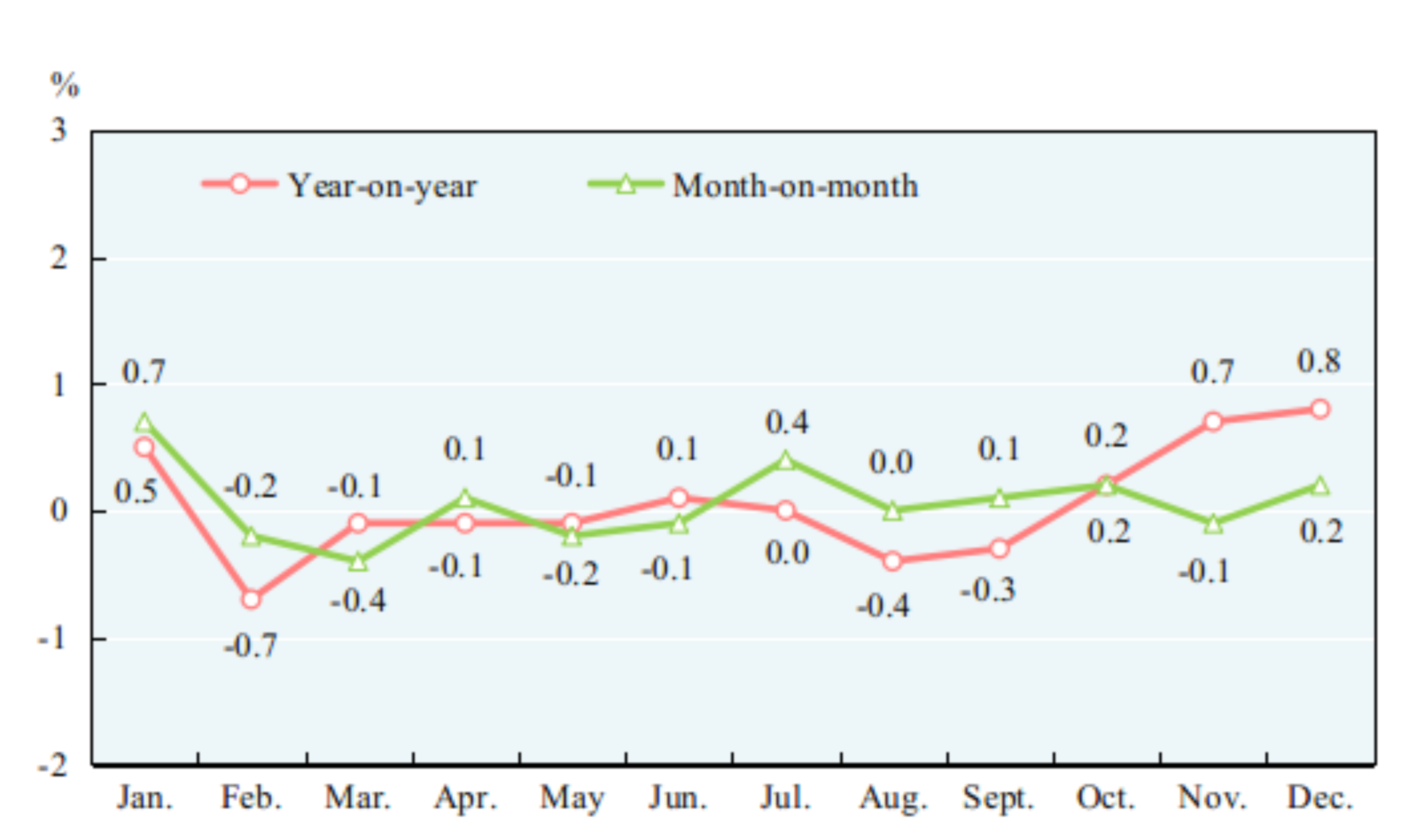 The consumer prices in 2025 maintained the same level as that of the previous year. The producer prices for industrial products went down by 2.6 percent and the purchasing prices for industrial producers was down by 3.0 percent. The producer prices for farm products[9] dropped by 3.7 percent. In December, out of the 70 large and medium-sized cities, 6 cities experienced a month-on-month rise in sales prices of newly-built commercial residential buildings, 6 cities maintained the same level and 58 cities experienced a decline; 70 cities experienced a month-on-month decline in sales prices of second-hand housing. Five cities experienced a year-on-year rise in sales prices of newly-built commercial residential buildings, and 65 cities experienced a decline. The number of cities experiencing a year-on-year decline in sales prices of second-hand housing was 70.