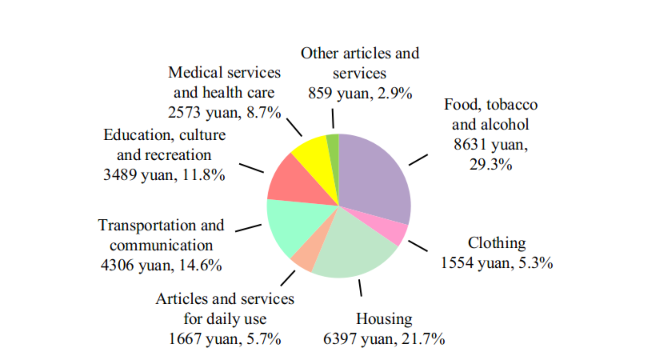 [66] The consumption expenditure on services refers to the spending by households on services for daily lives including catering, clothing and footwear processing, housing, family, transportation and communication, education, culture and recreation, medical services and others.