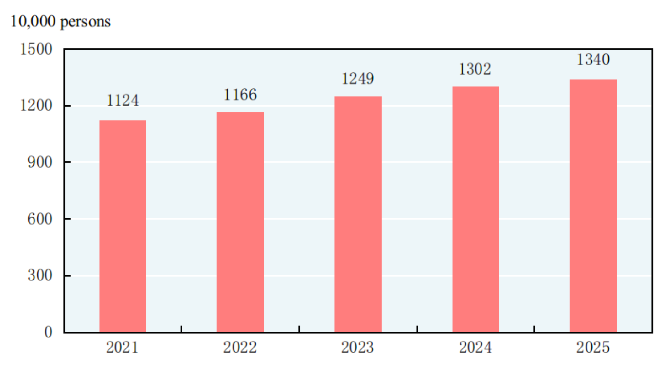 At the end of 2025, the number of employed people in China was 725.04 million, of which, that in urban areas was 475.35 million, accounting for 65.6 percent of the total employed people. The newly increased employed people in urban areas[7] numbered 12.67 million in 2025, 0.11 million more than that of the previous year. The urban surveyed unemployment rate in 2025 averaged 5.2 percent. The urban surveyed unemployment rate at the year end was 5.1 percent. The total number of migrant workers[8] was 301.15 million, up by 0.5 percent over that of 2024. Specifically, the number of migrant workers who left their hometowns and worked in other places was 180.06 million, up by 0.8 percent, and those who worked in their own localities reached 121.09 million, up by 0.1 percent.