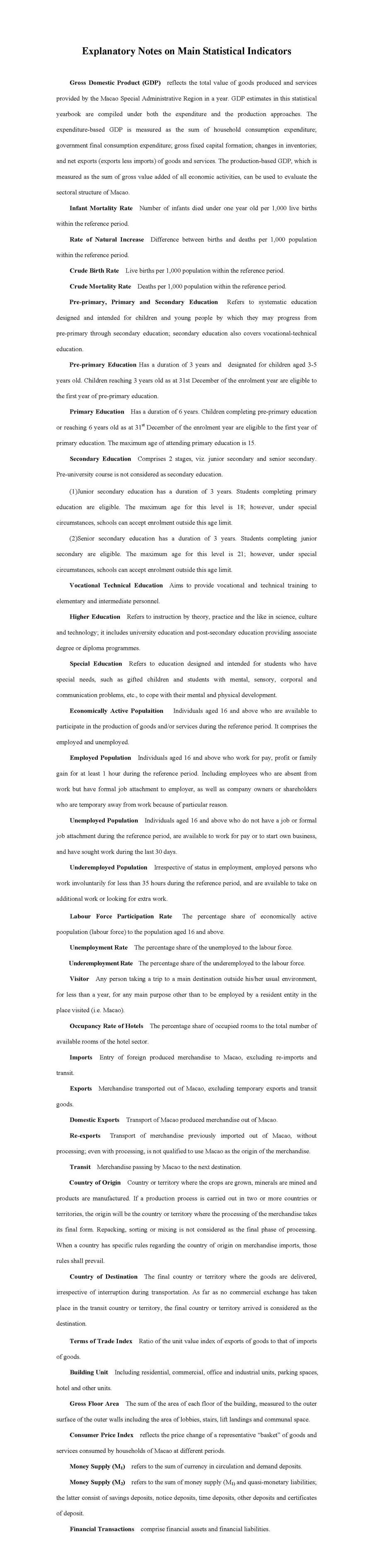 Main Social and Economic Indicators of Macao Special Administrative Region