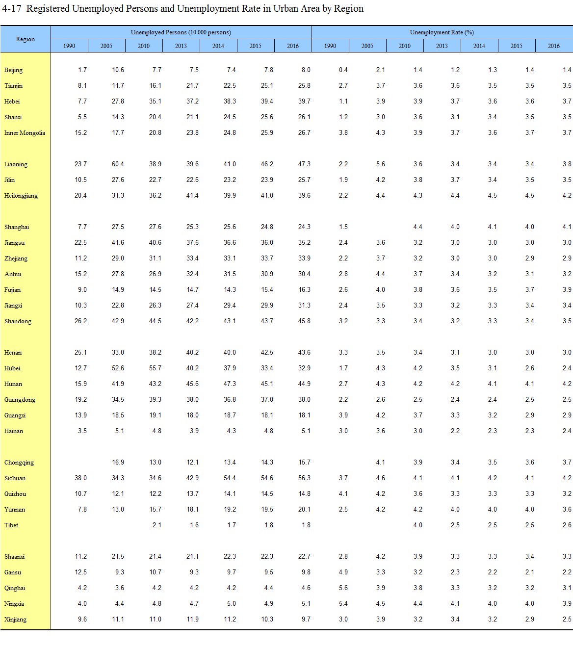 4-17 Registered Unemployed Persons and Unemployment Rate in Urban Area by Region