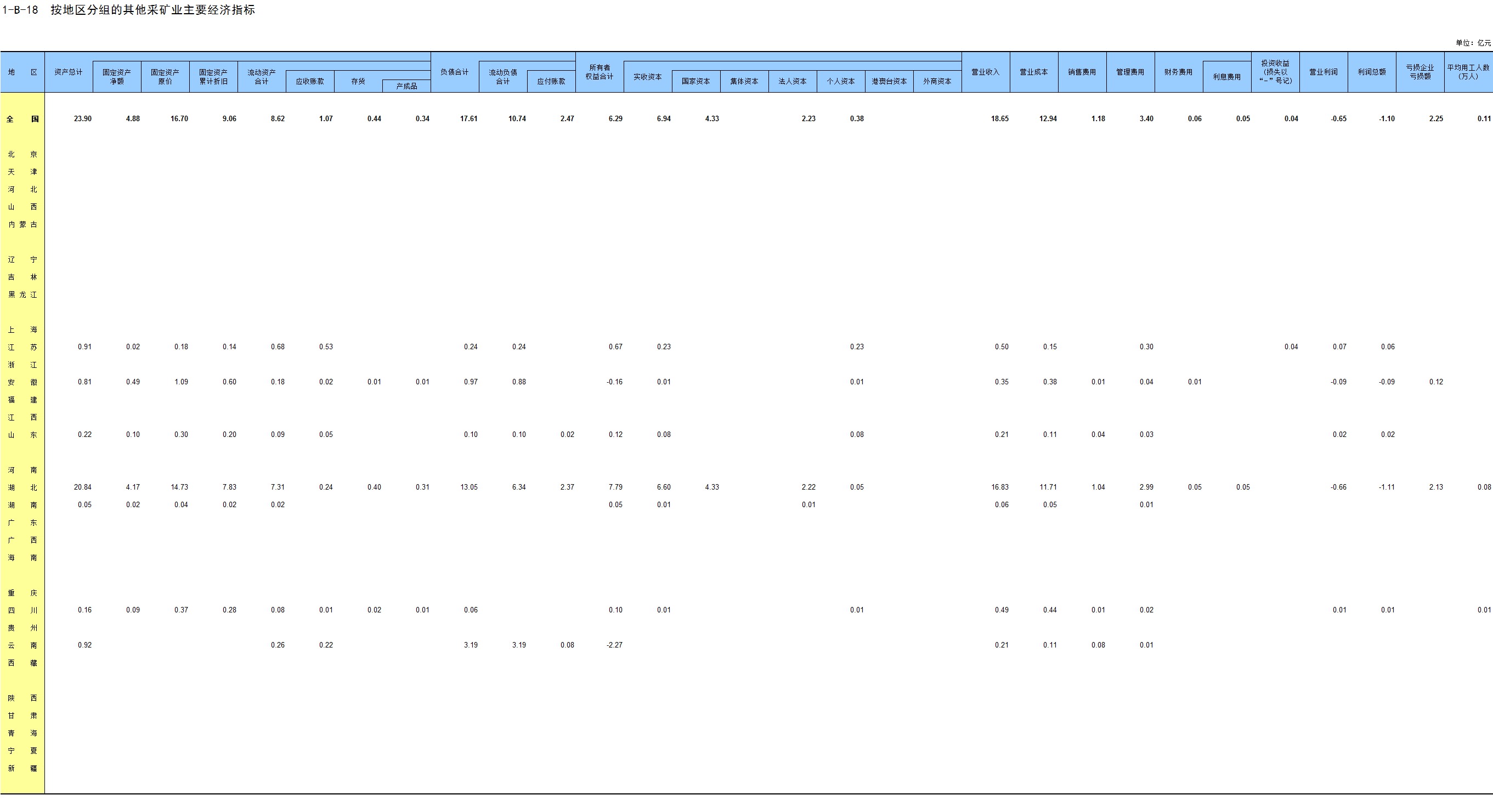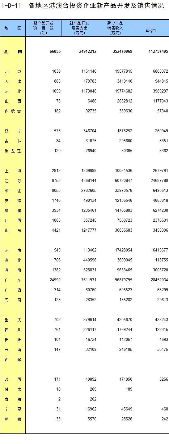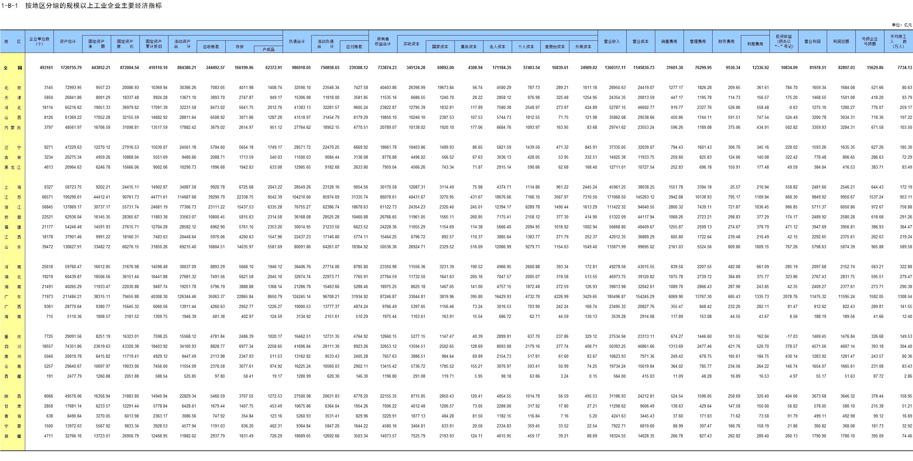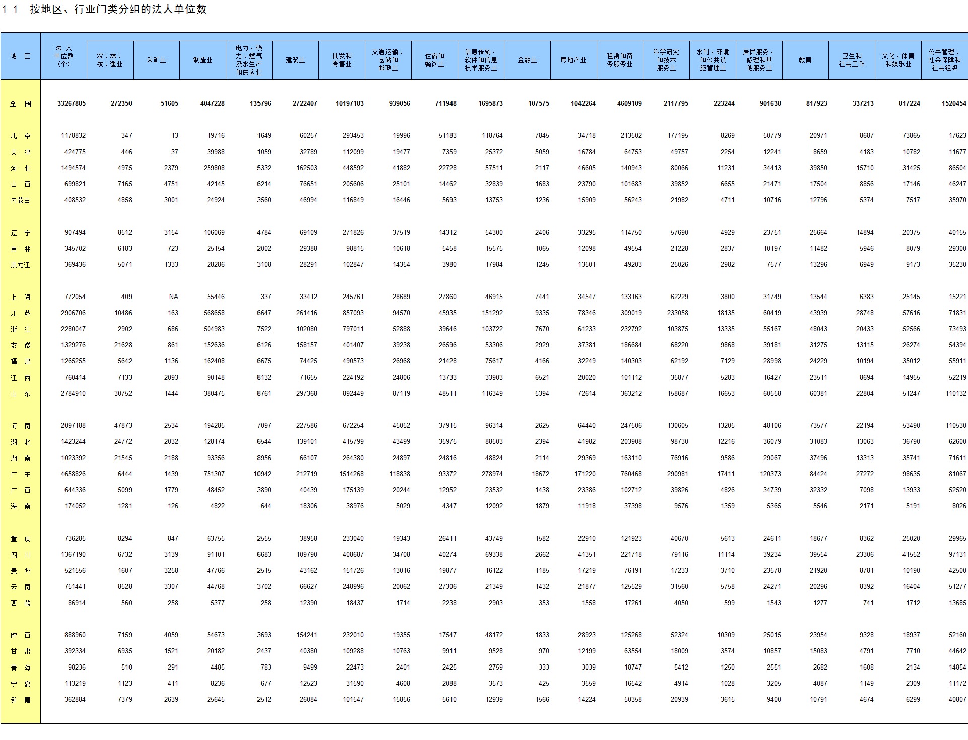 1-1 按地区、行业门类分组的法人单位数