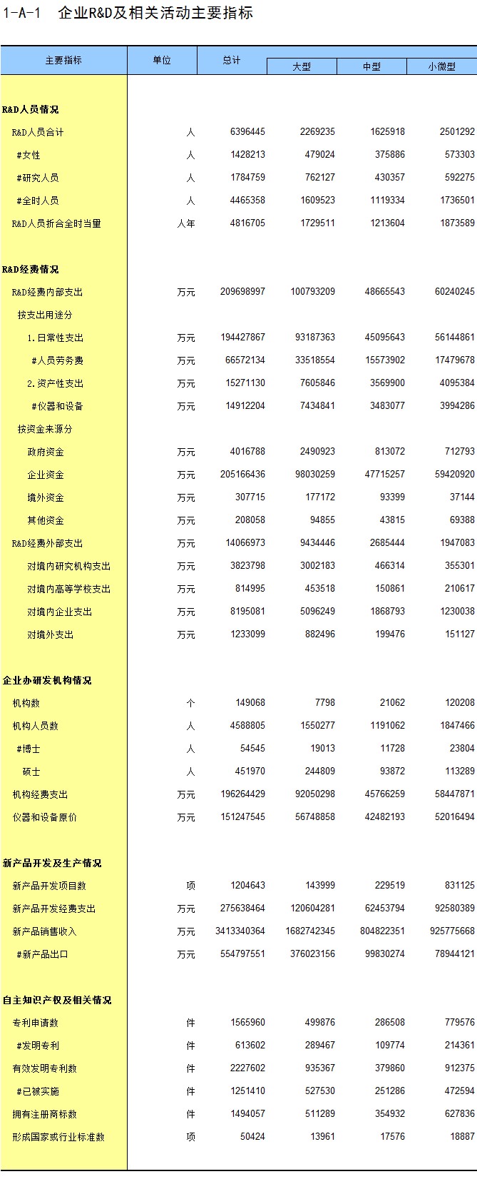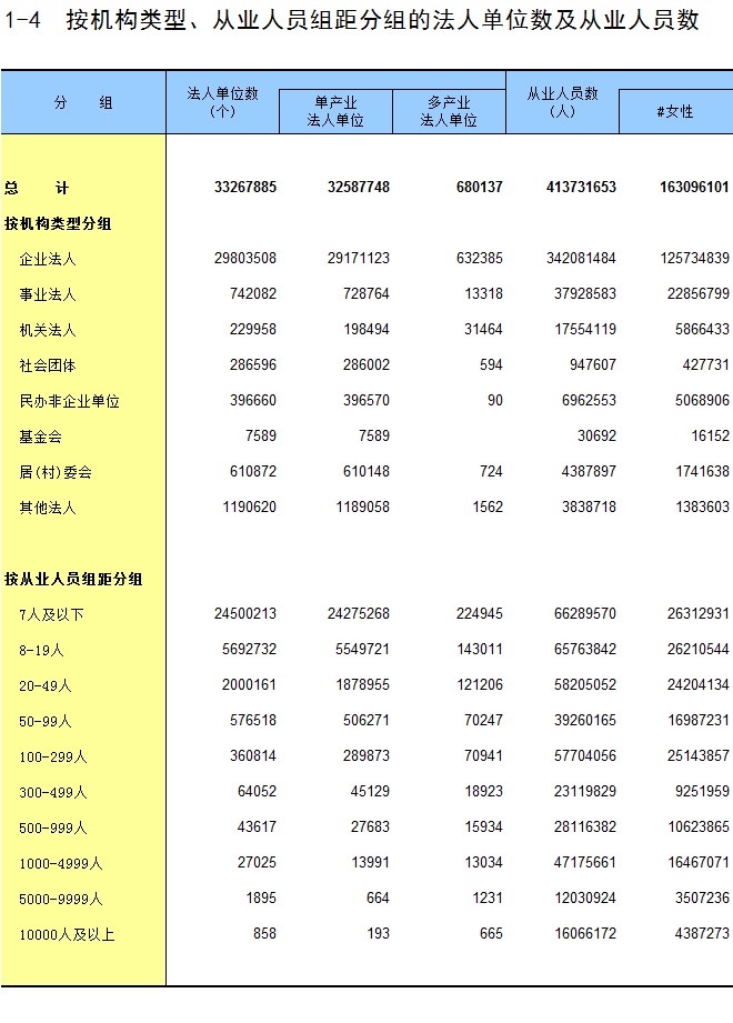 1-4 按机构类型、从业人员组距分组的法人单位数及从业人员数