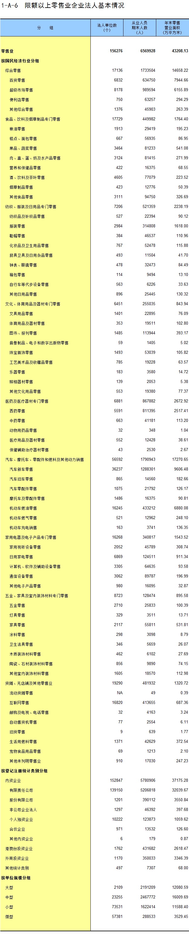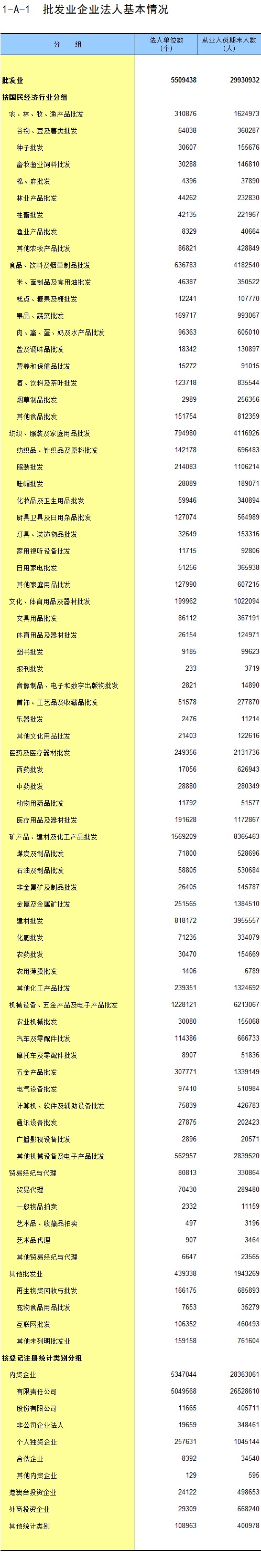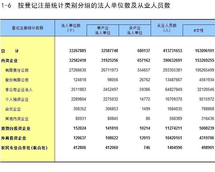 1-6 按登记注册统计类别分组的法人单位数及从业人员数