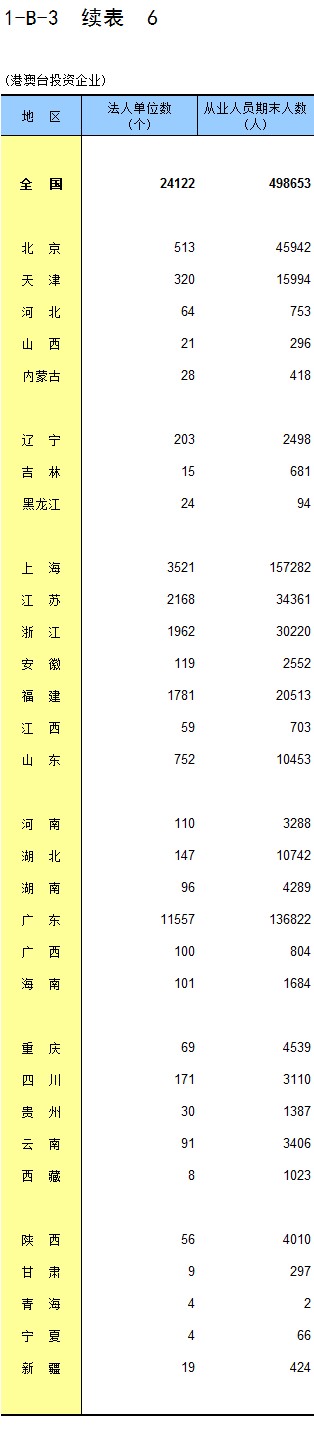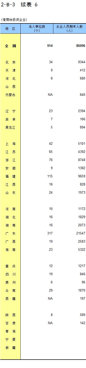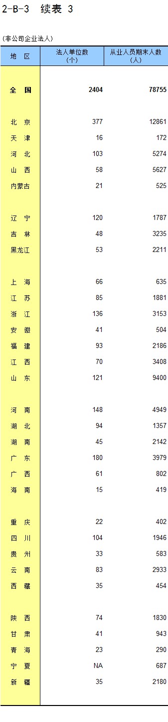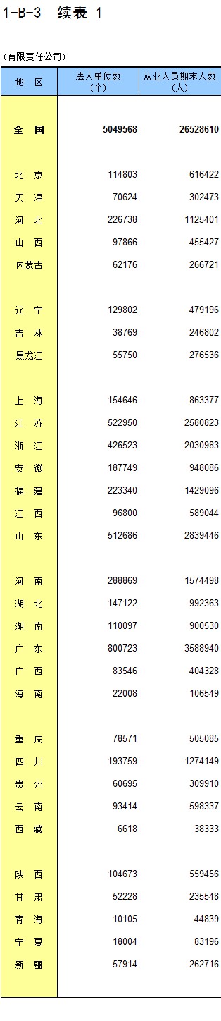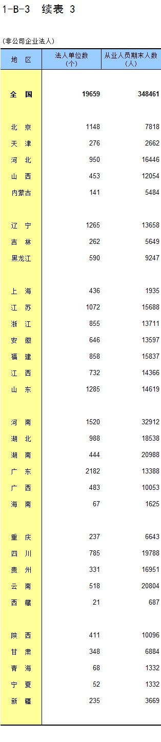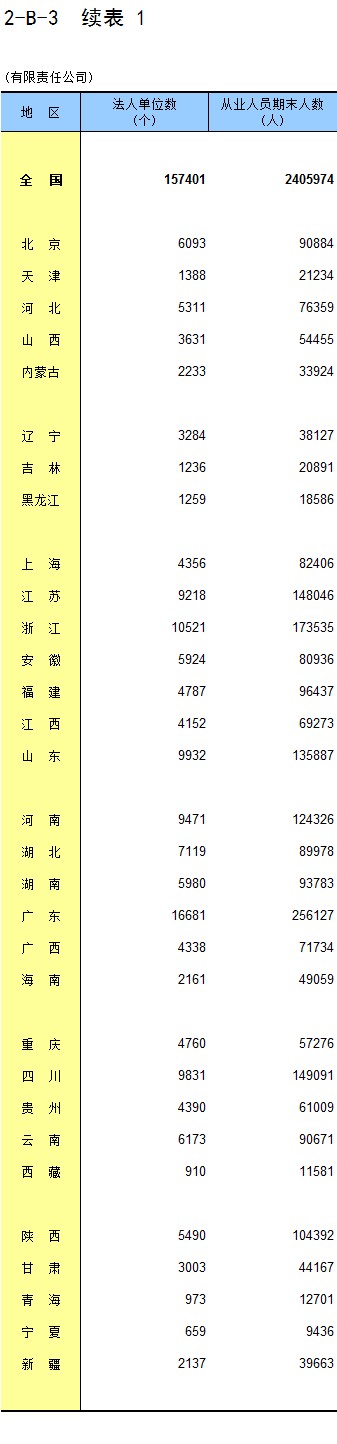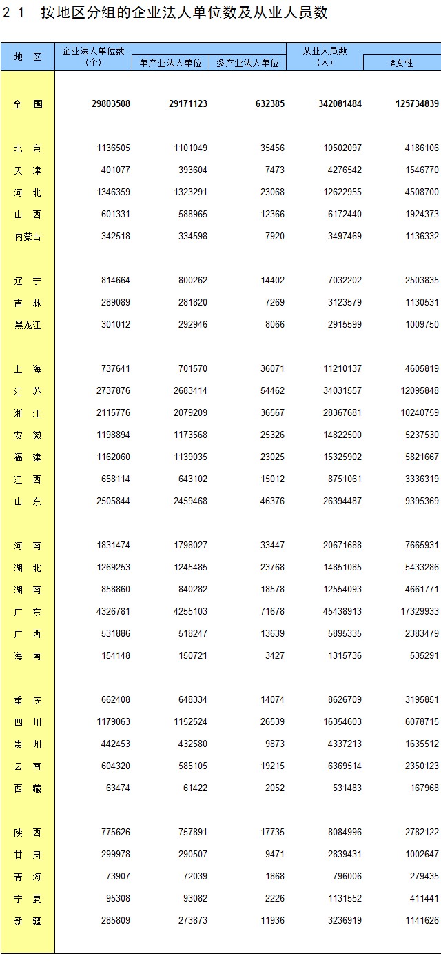 2-1 按地区分组的企业法人单位数及从业人员数
