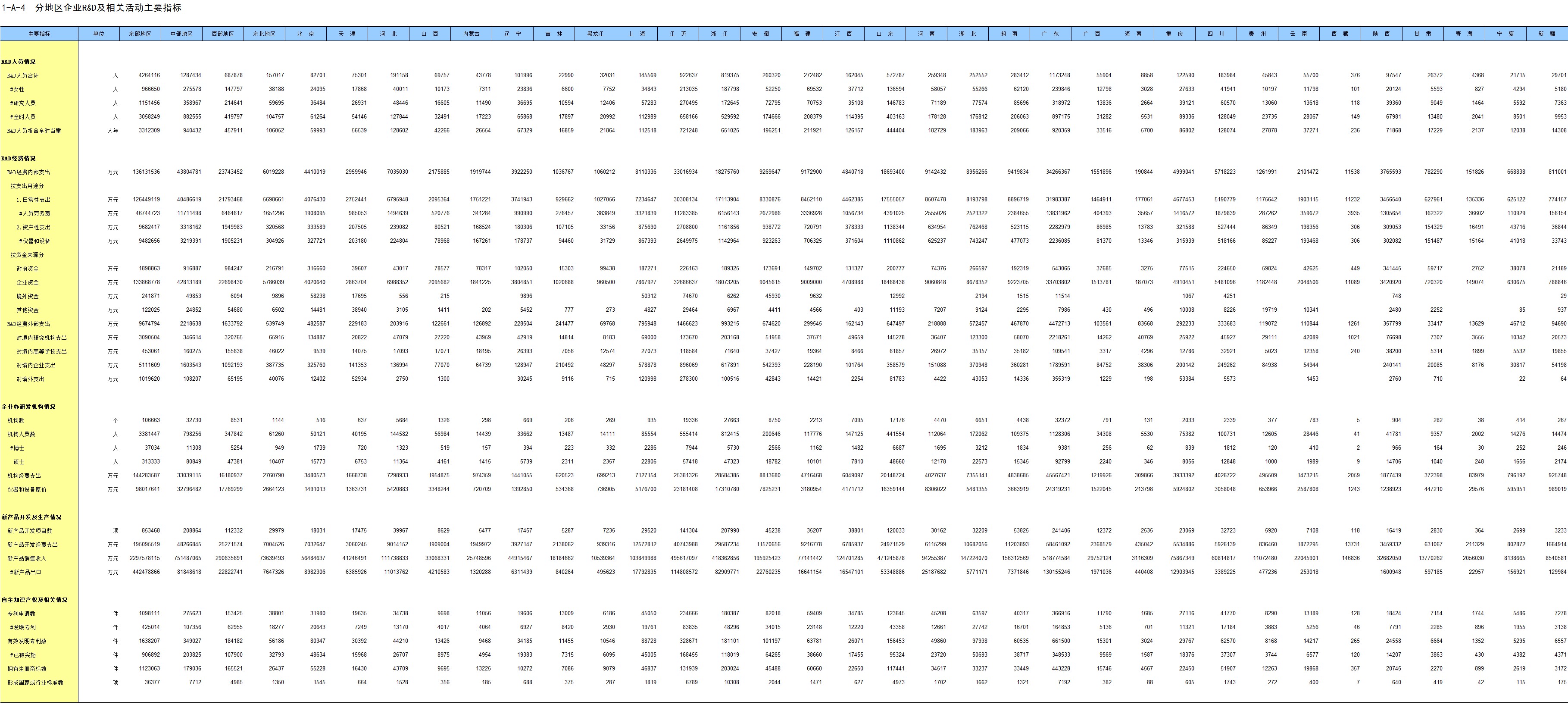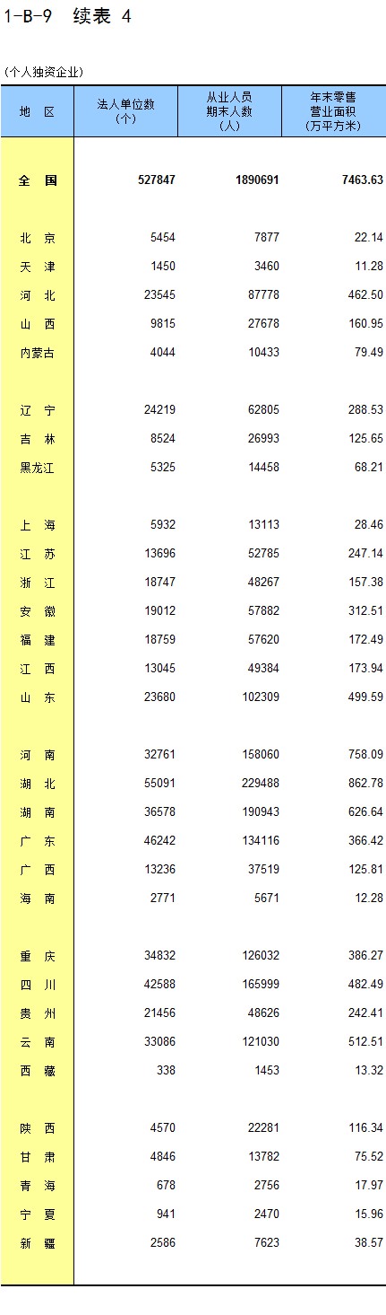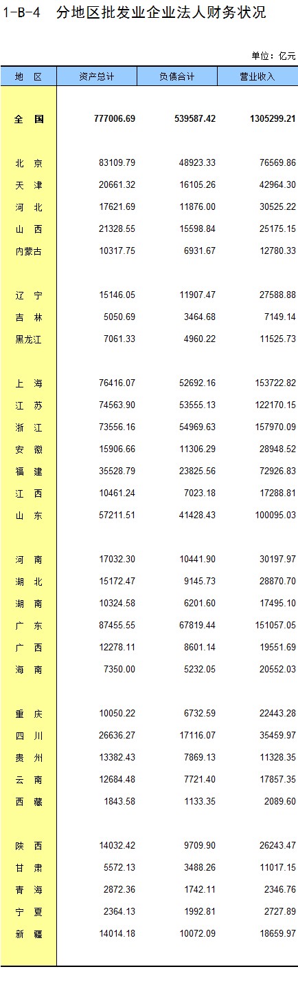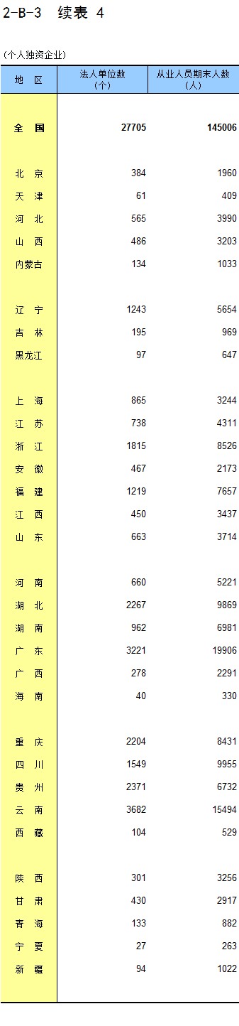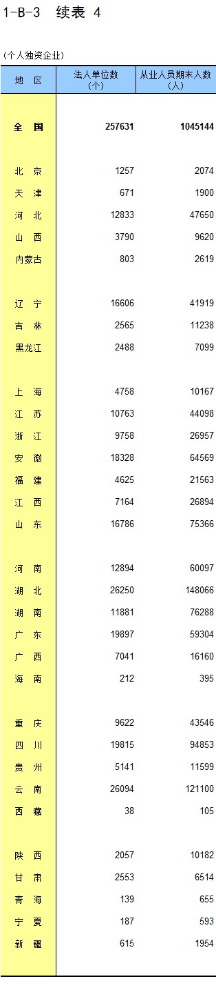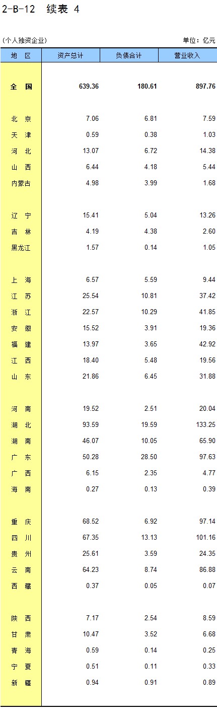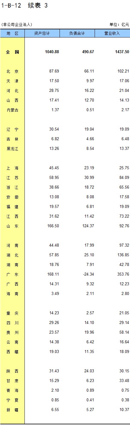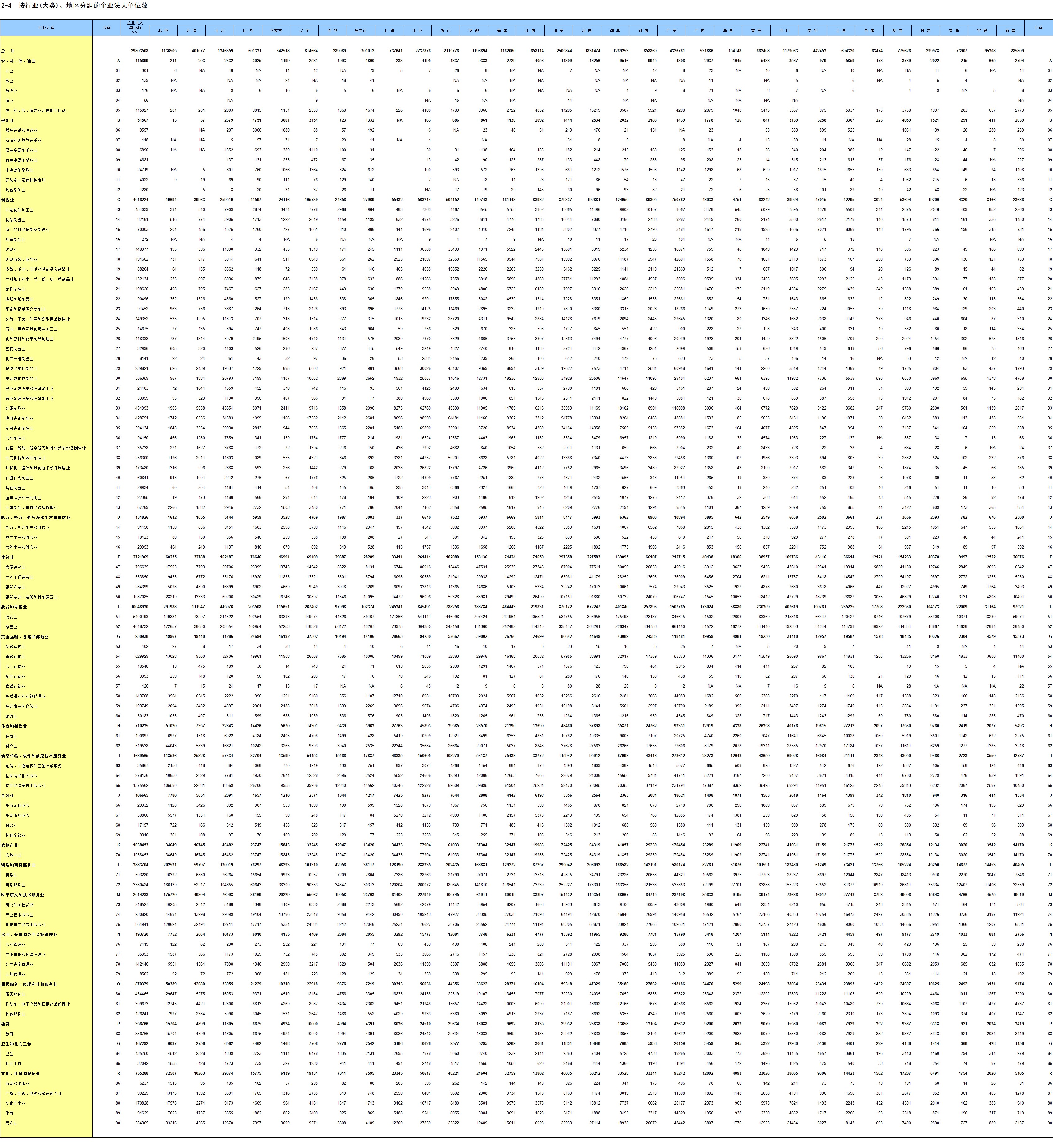 2-4 按行业(大类)、地区分组的企业法人单位数
