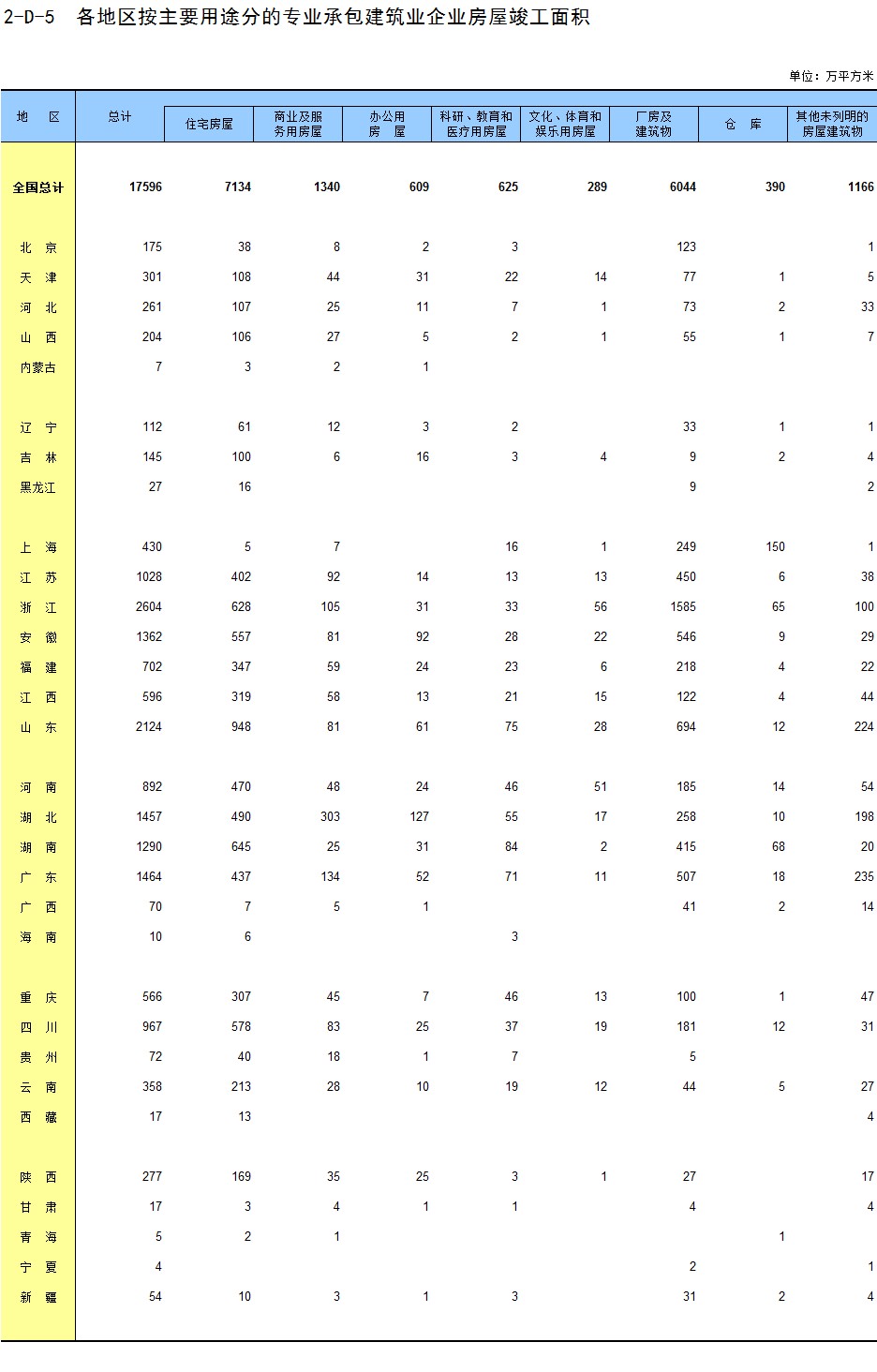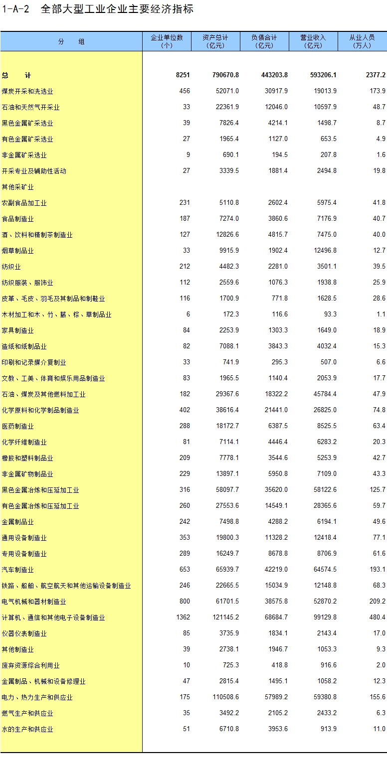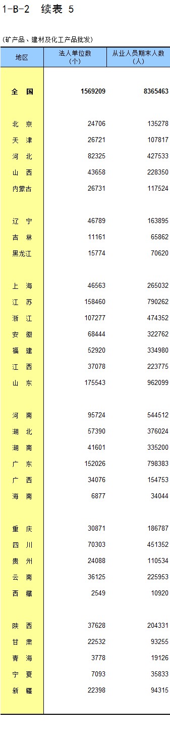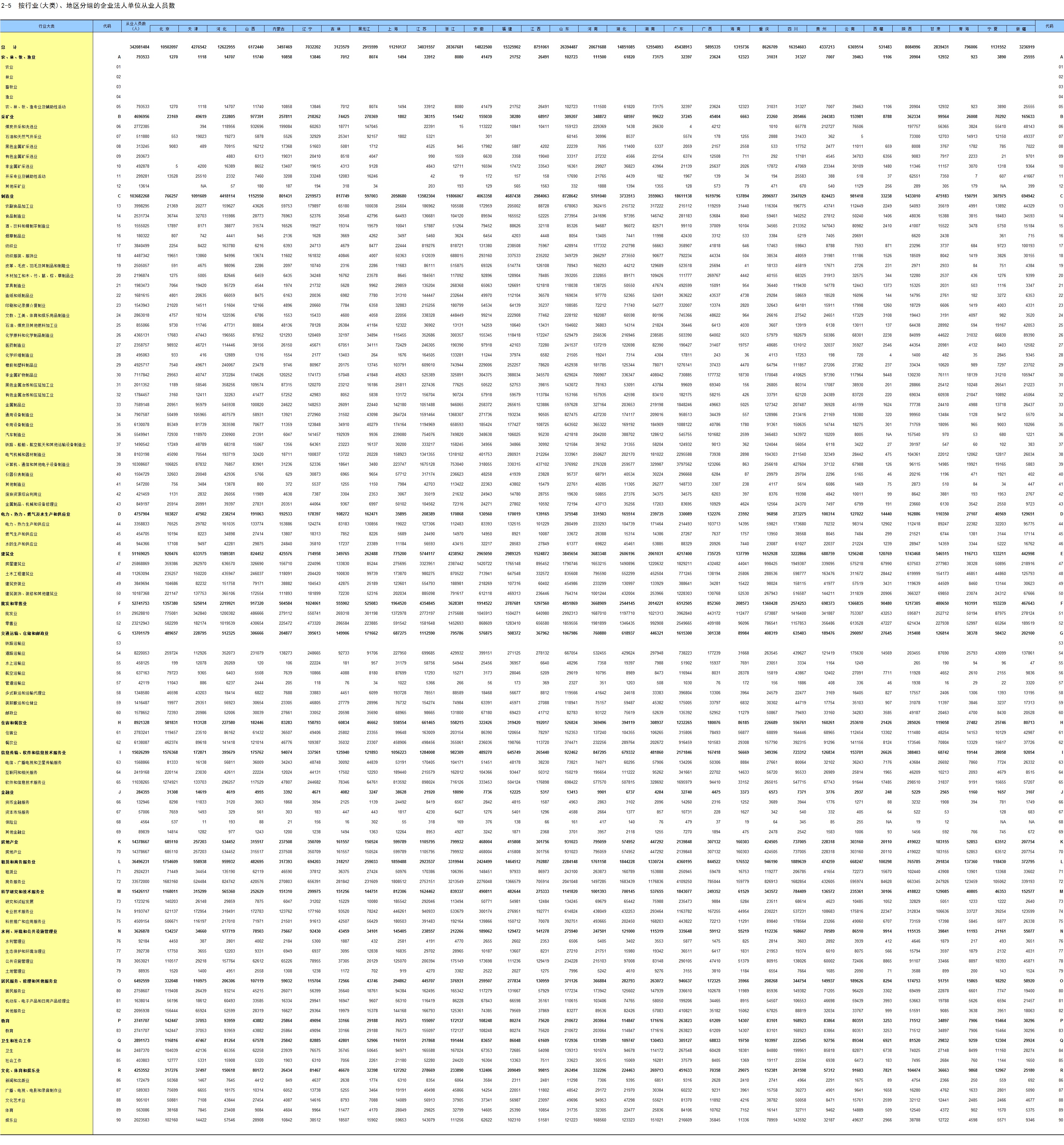 2-5 按行业(大类)、地区分组的企业法人单位从业人员数