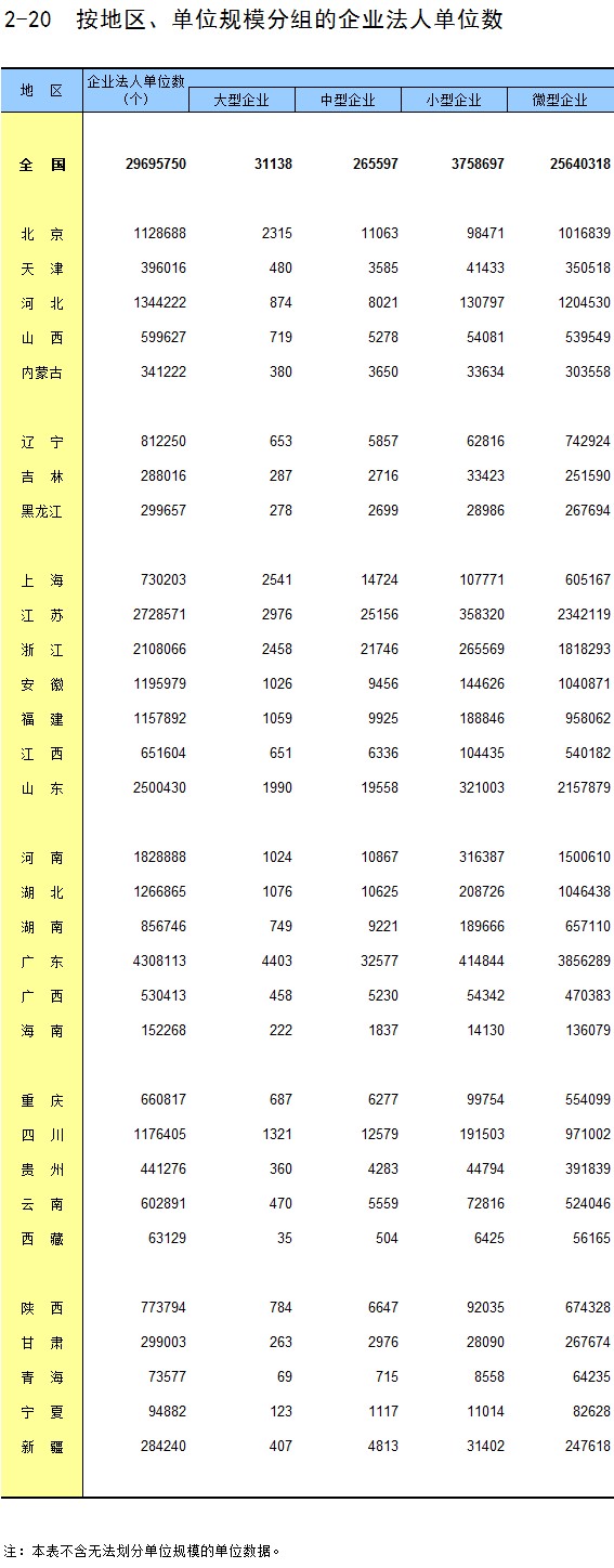2-20 按地区、单位规模分组的企业法人单位数