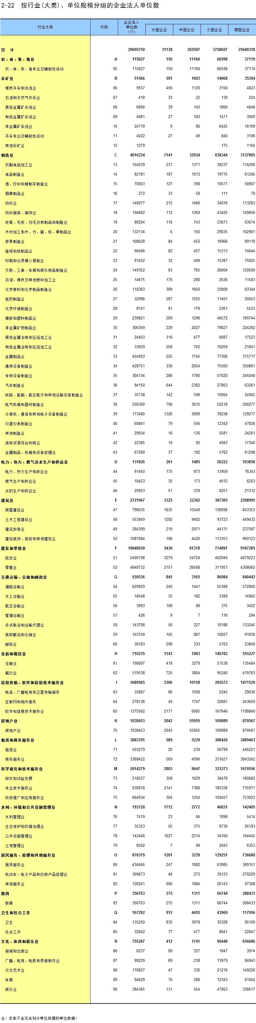 2-22 按行业(大类)、单位规模分组的企业法人单位数