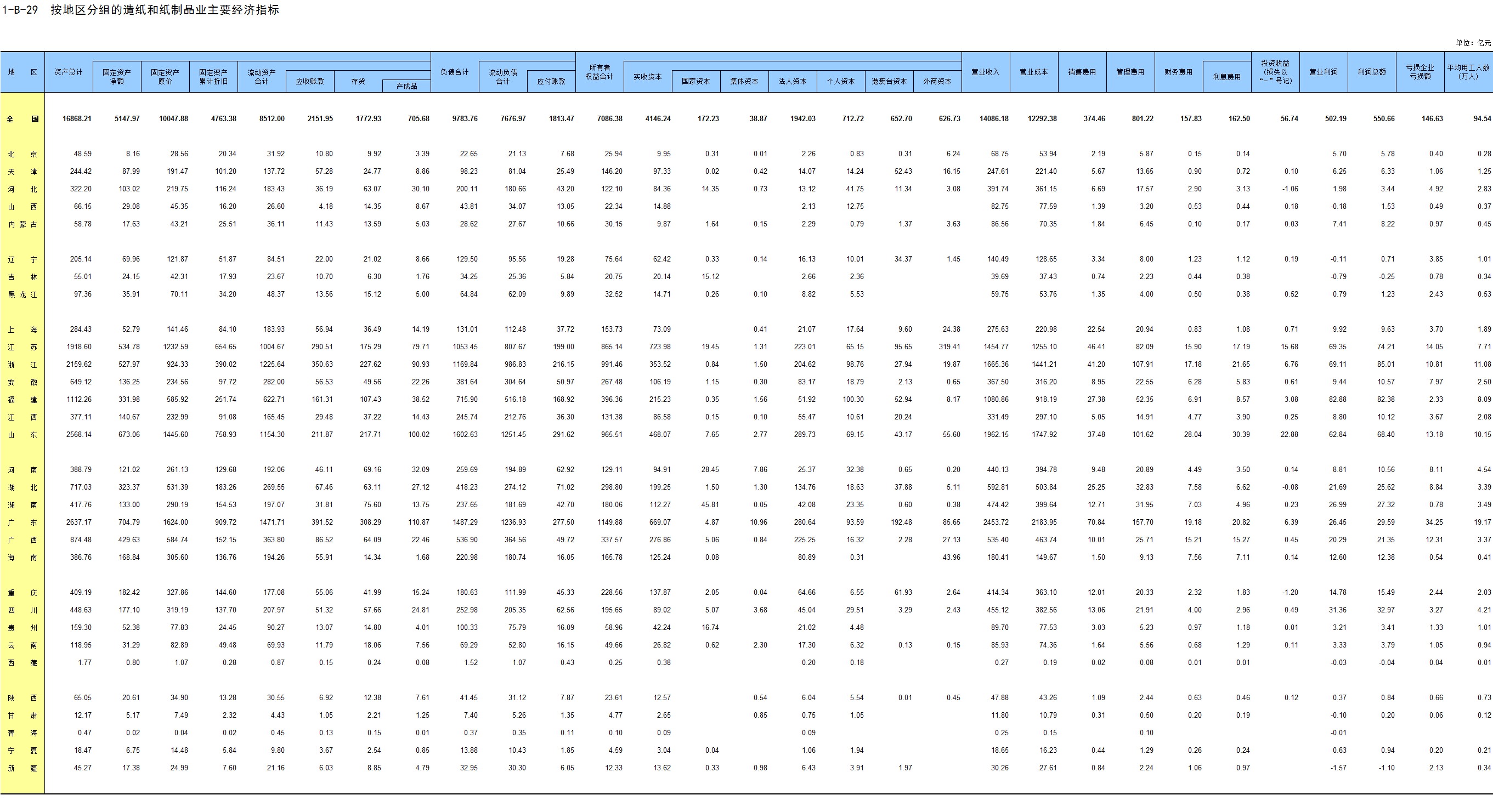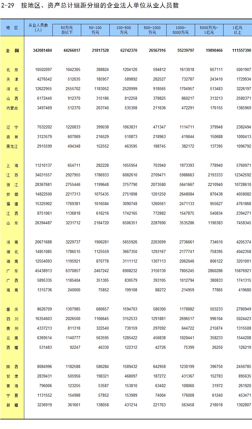2-29 按地区、资产总计组距分组的企业法人单位从业人员数