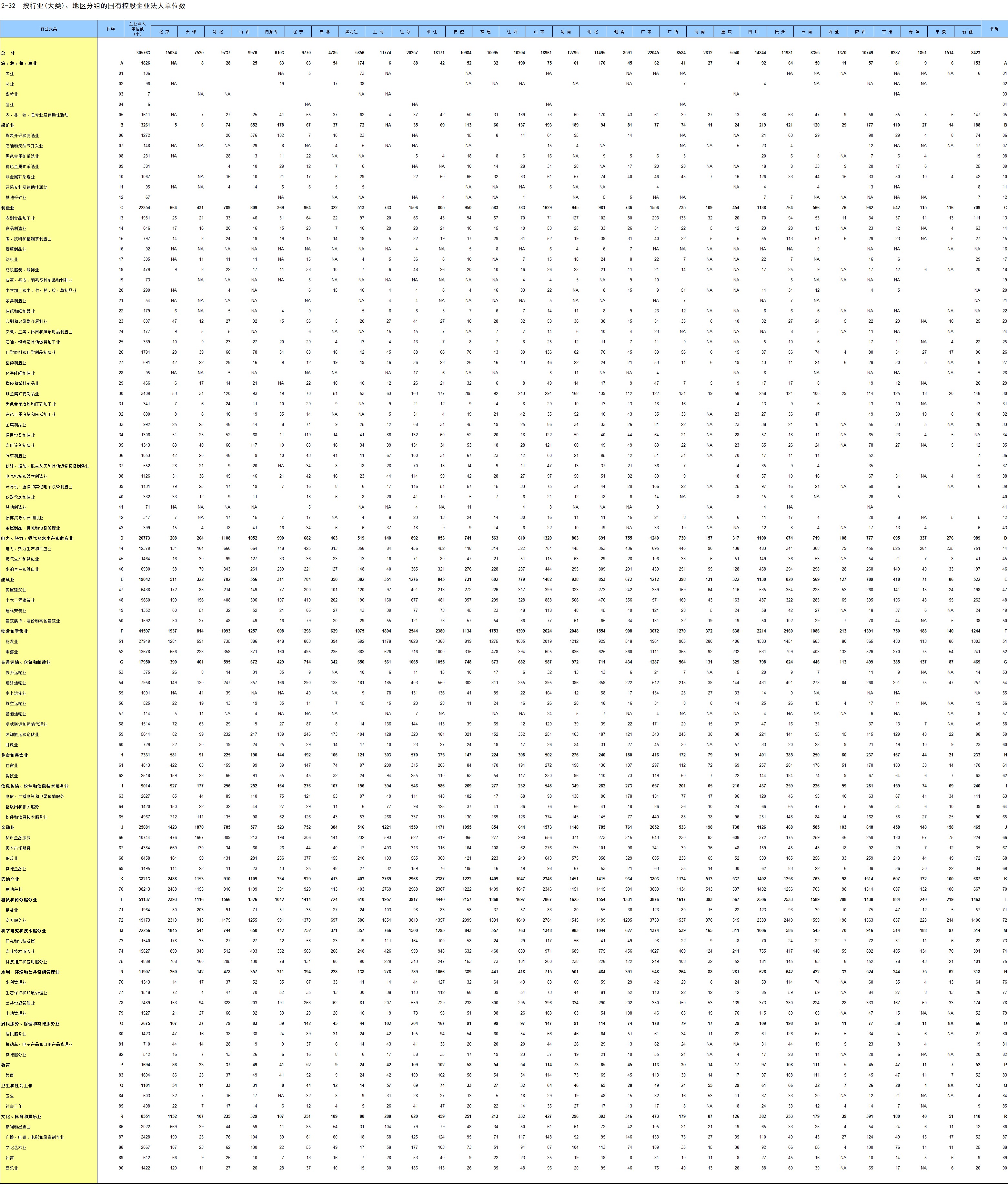 2-32 按行业(大类)、地区分组的国有控股企业法人单位数