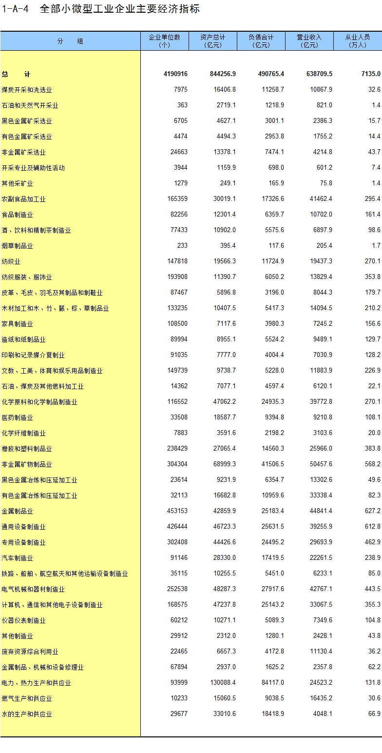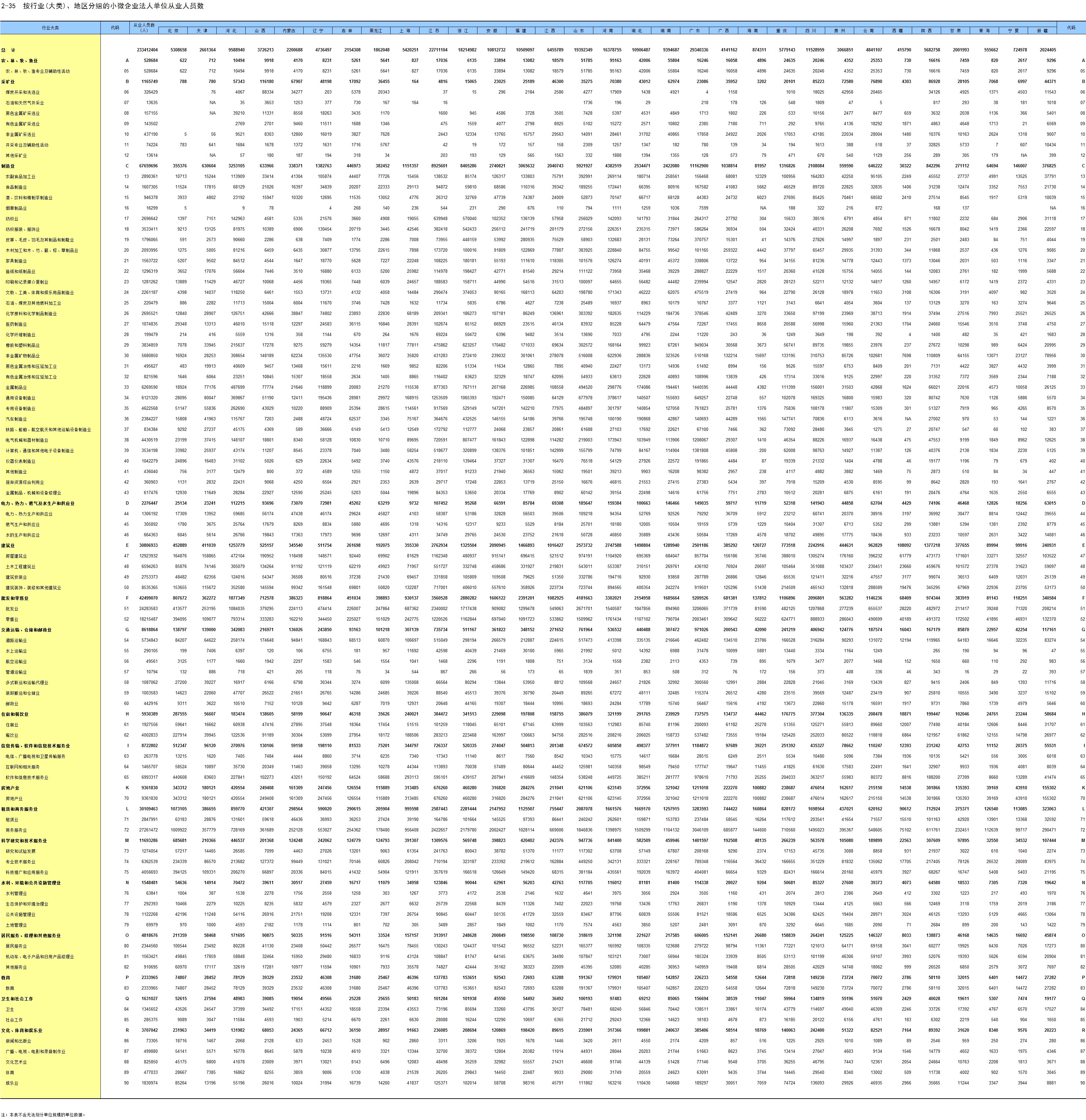 2-35 按行业(大类)、地区分组的小微企业法人单位从业人员数