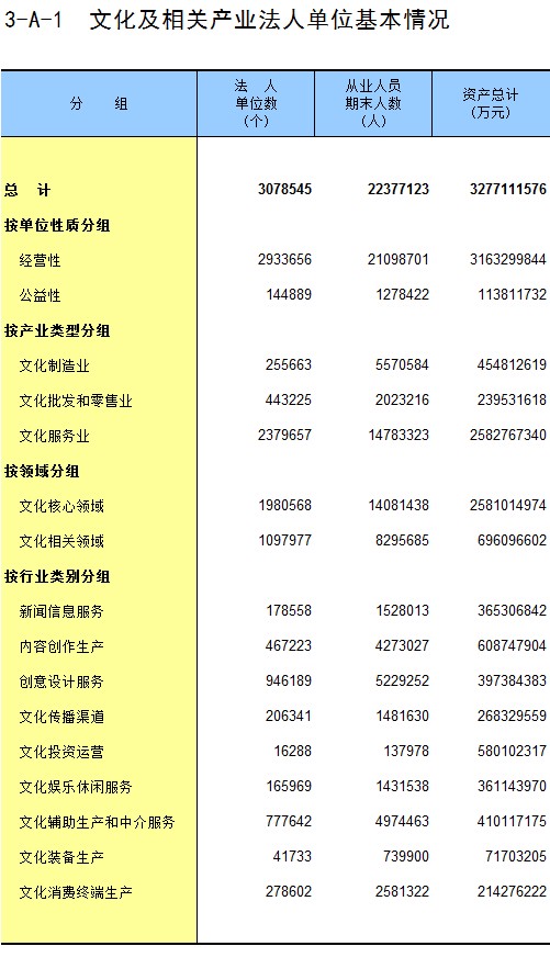 3-A-1 文化及相关产业法人单位基本情况