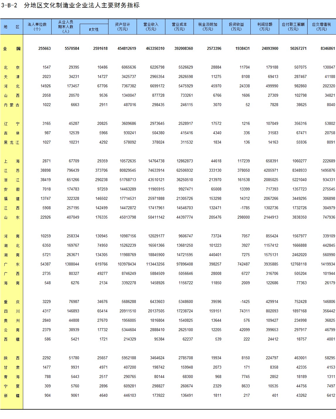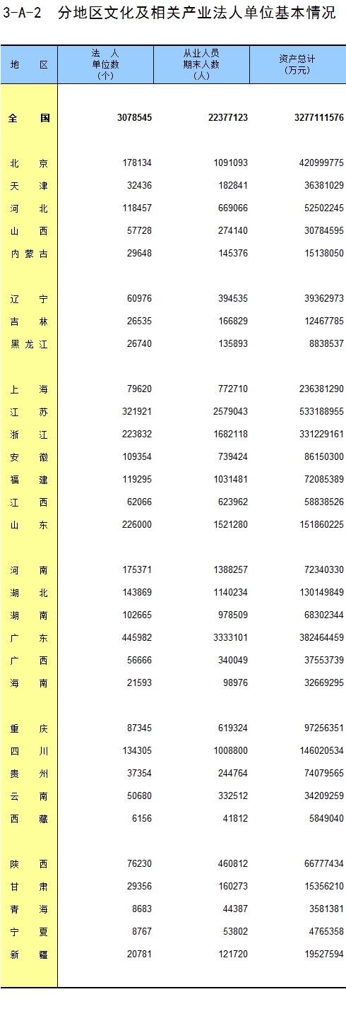 3-A-2 分地区文化及相关产业法人单位基本情况