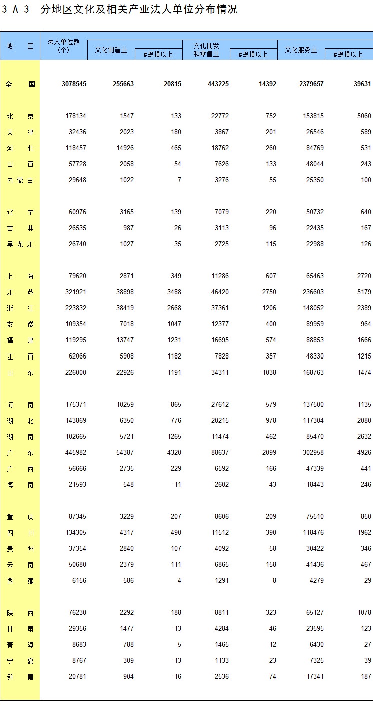 3-A-3 分地区文化及相关产业法人单位分布情况