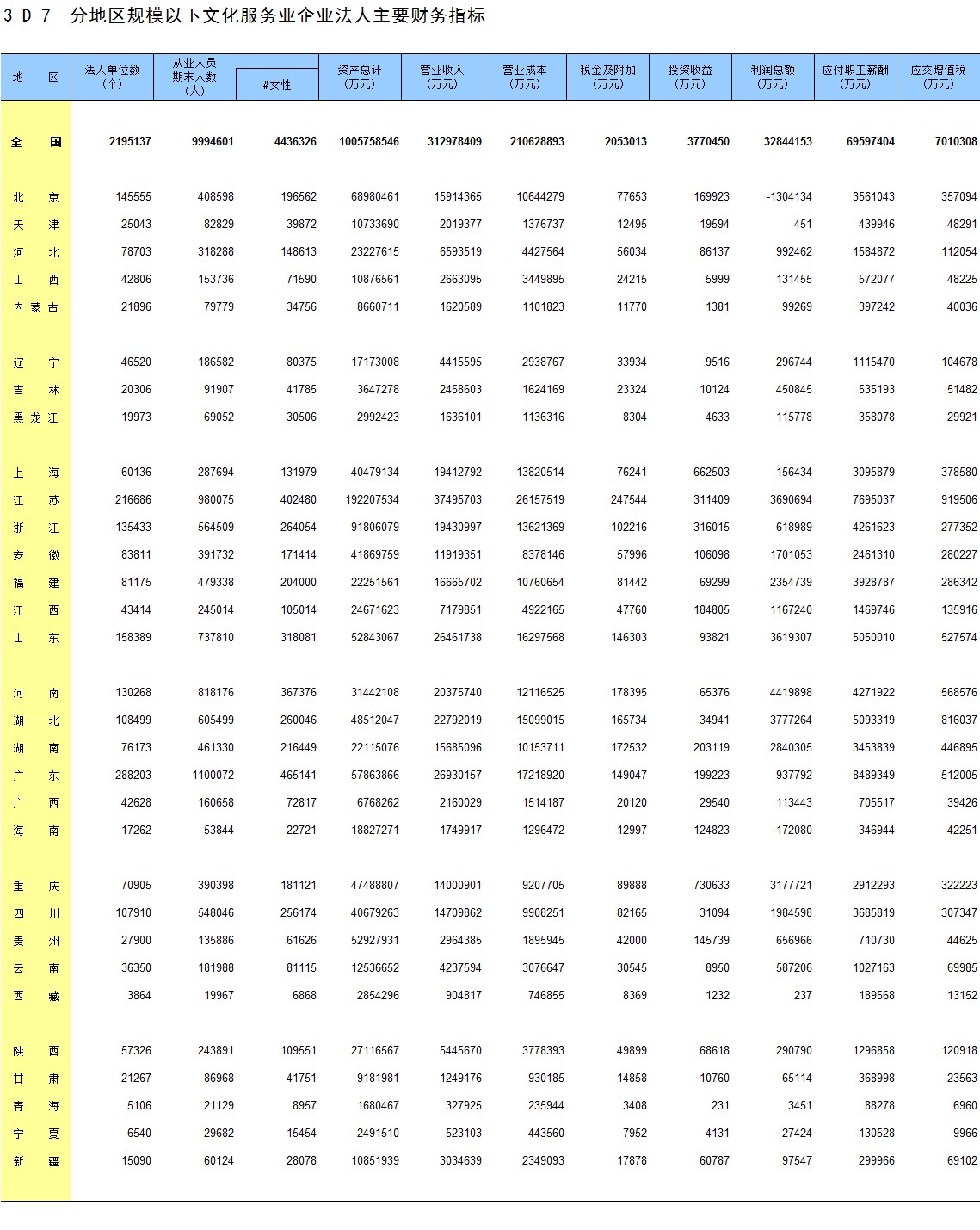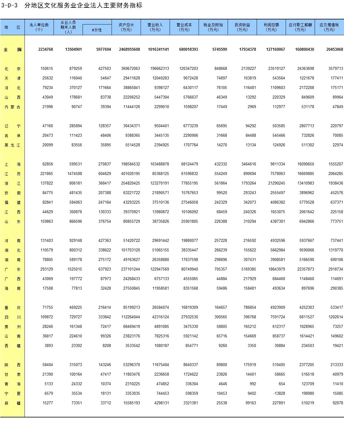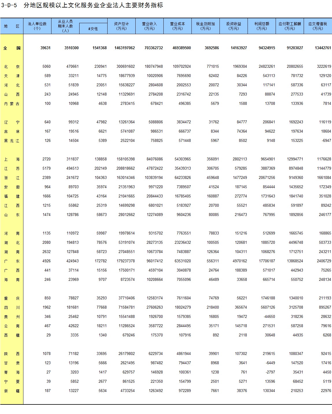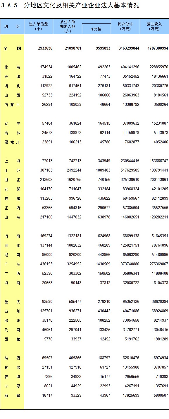 3-A-5 分地区文化及相关产业企业法人基本情况
