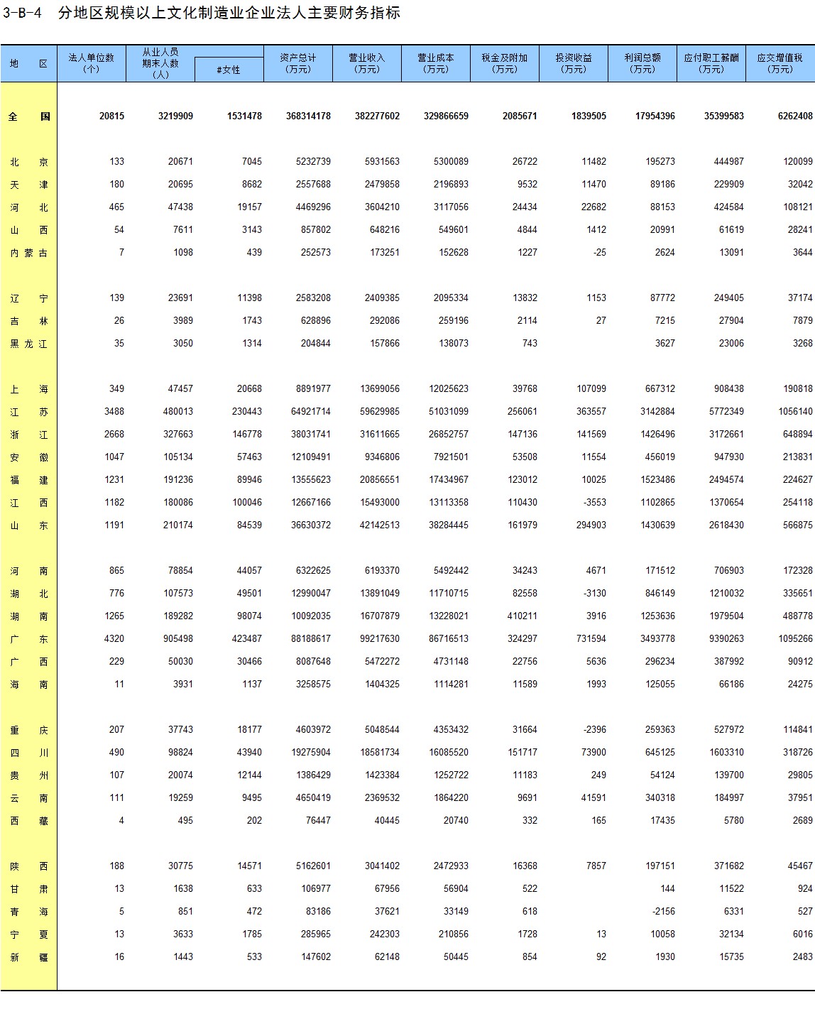 3-B-4 分地区规模以上文化制造业企业法人主要财务指标