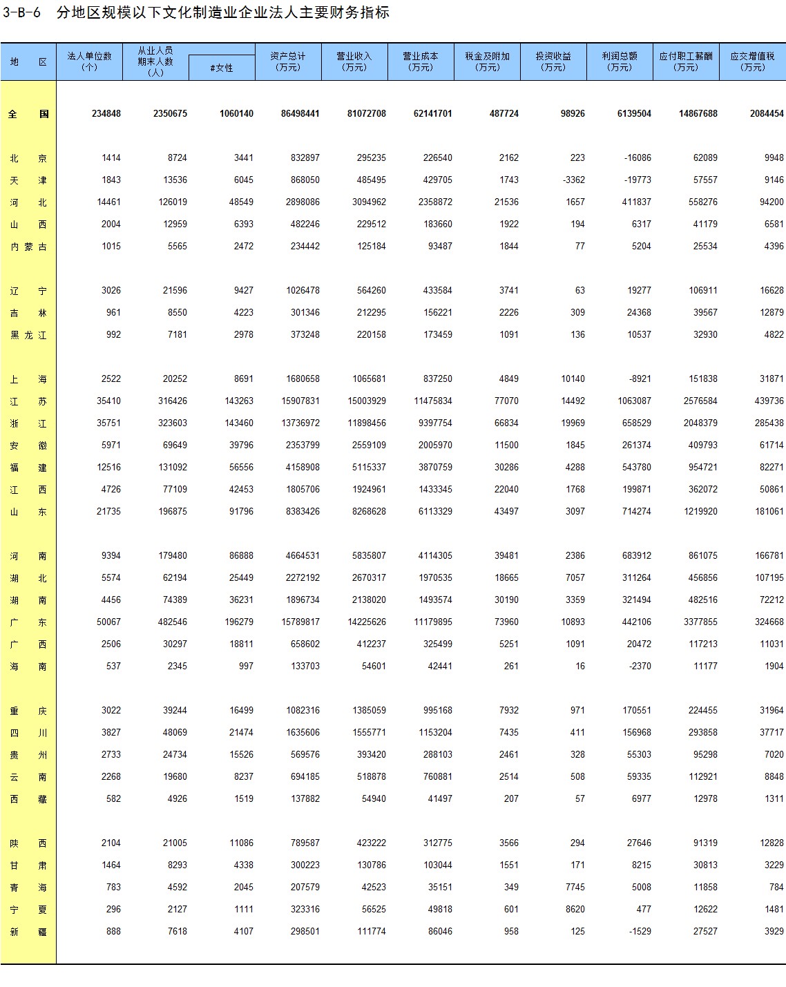 3-B-6 分地区规模以下文化制造业企业法人主要财务指标
