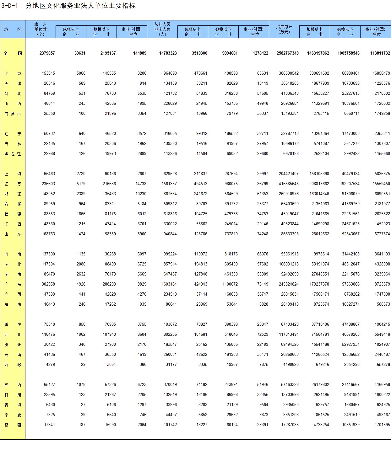 3-D-1 分地区文化服务业法人单位主要指标