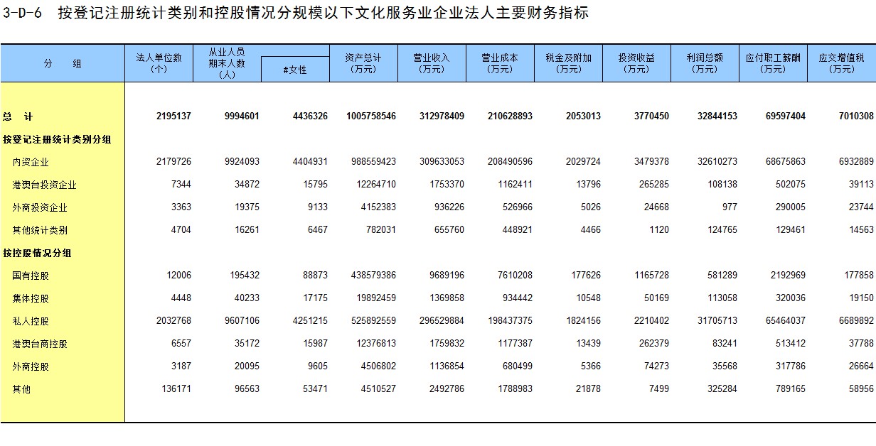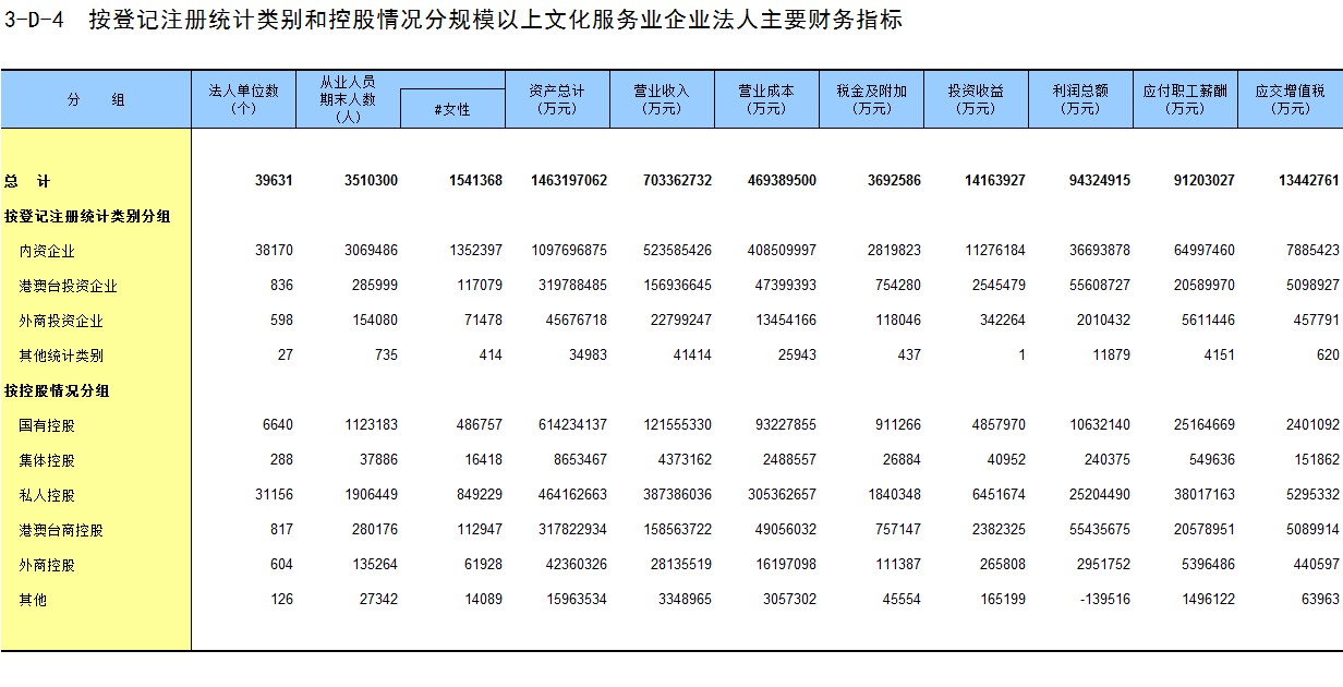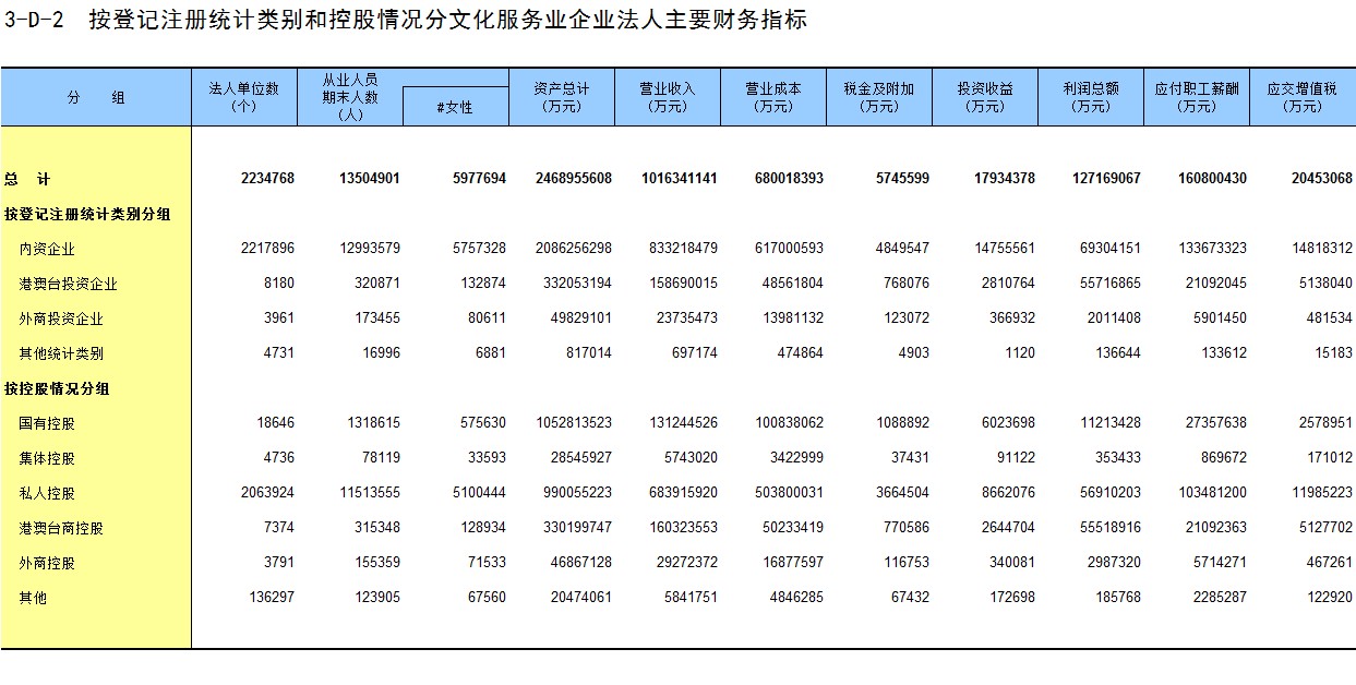 3-D-2 按登记注册统计类别和控股情况分文化服务业企业法人主要财务指标