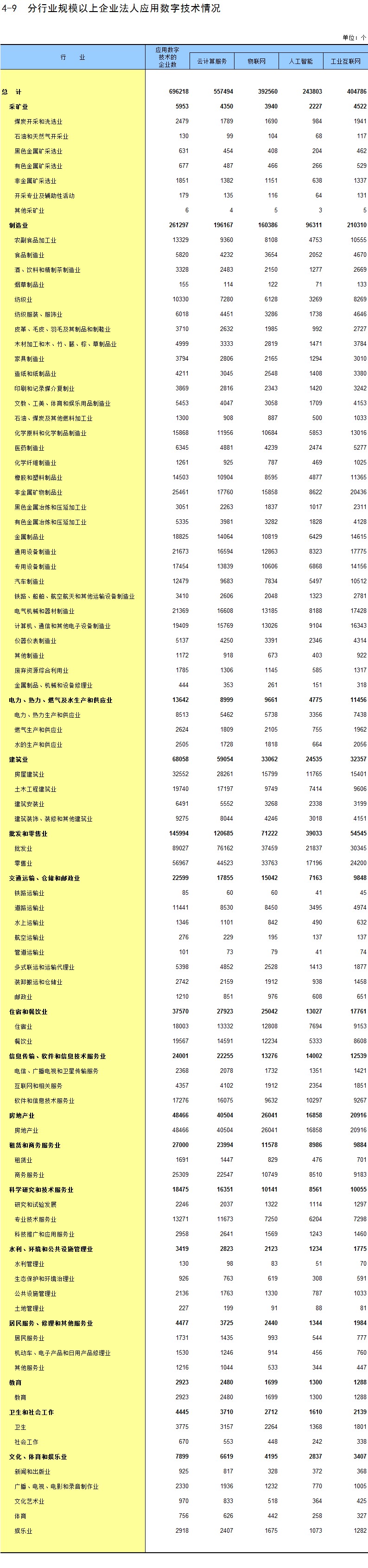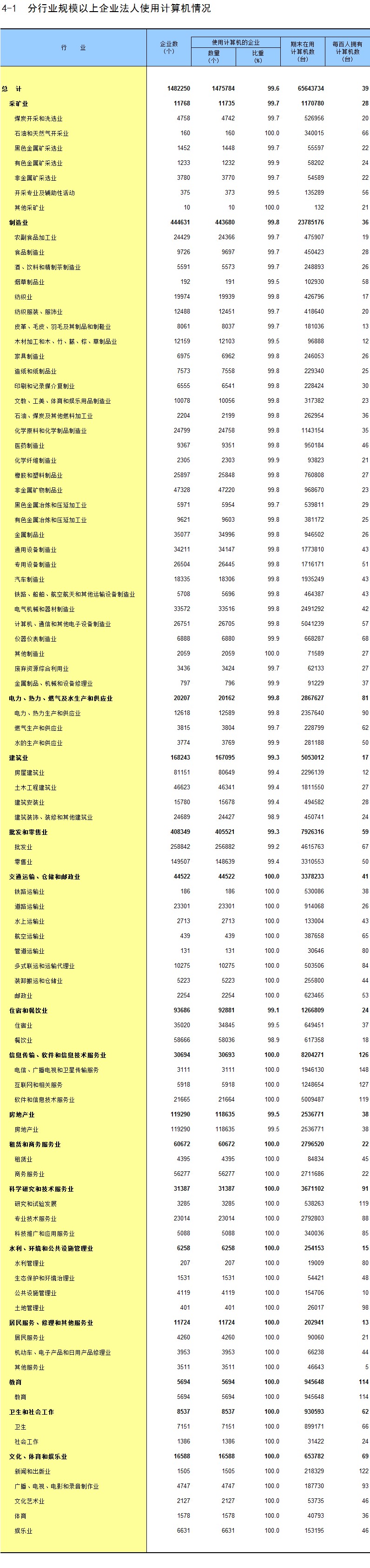 4-1 分行业规模以上企业法人使用计算机情况