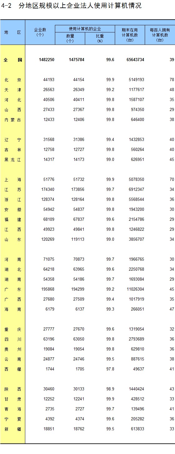 4-2 分地区规模以上企业法人使用计算机情况