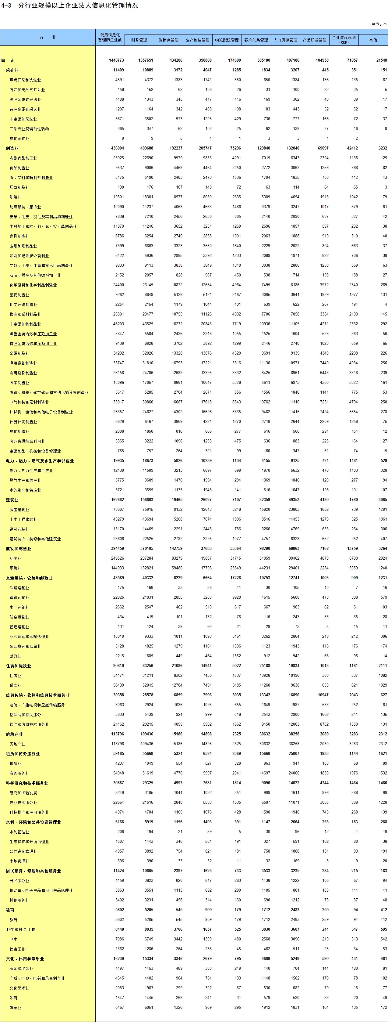 4-3 分行业规模以上企业法人信息化管理情况