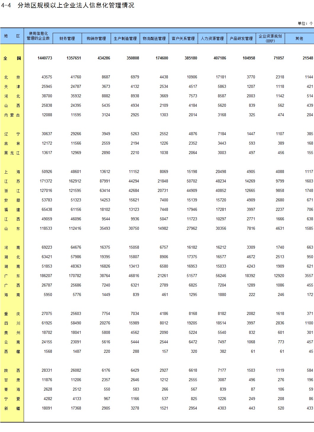 4-4 分地区规模以上企业法人信息化管理情况