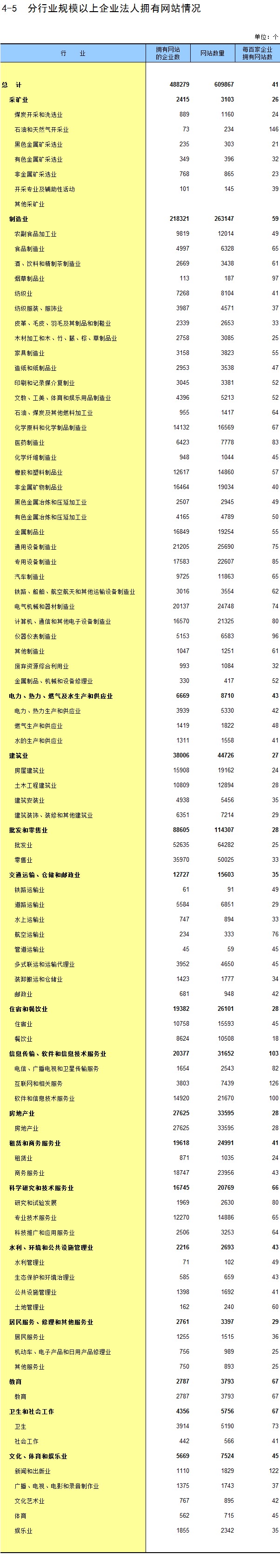 4-5 分行业规模以上企业法人拥有网站情况