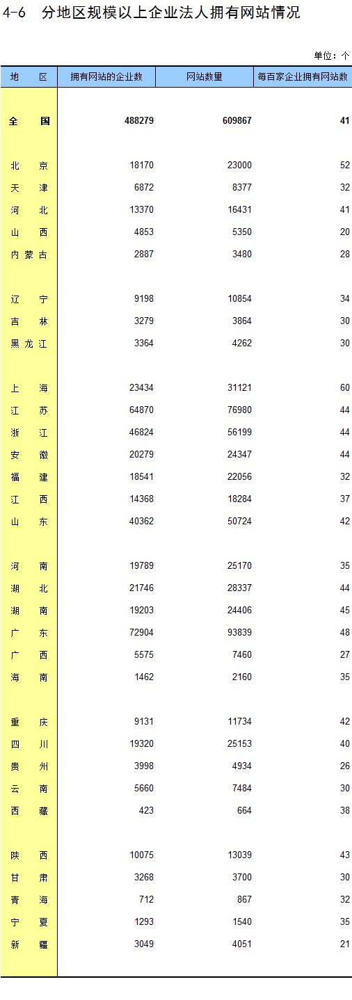 4-6 分地区规模以上企业法人拥有网站情况