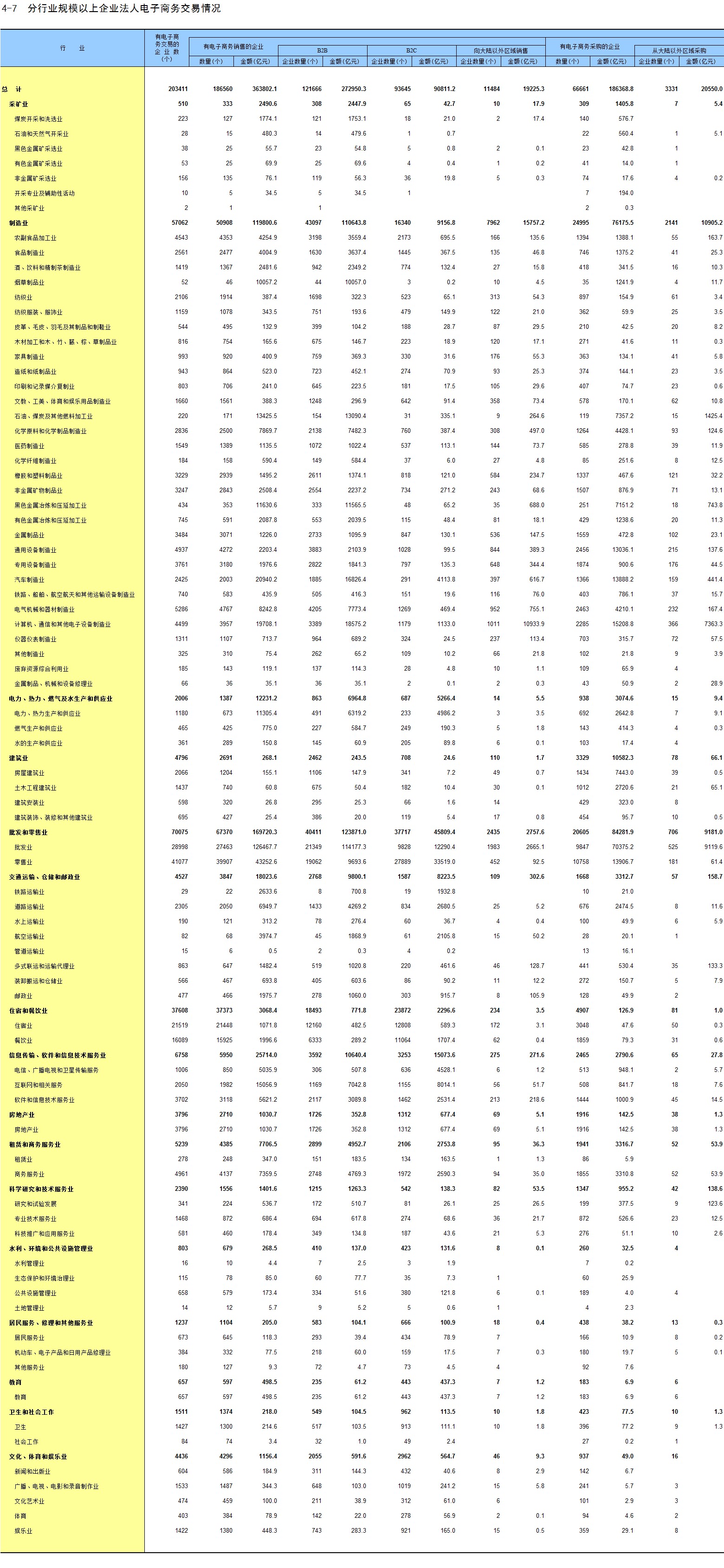 4-7 分行业规模以上企业法人电子商务交易情况