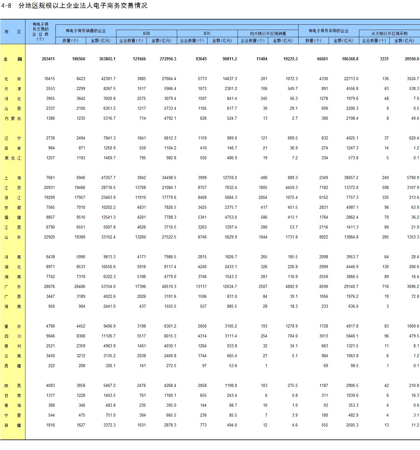 4-8 分地区规模以上企业法人电子商务交易情况