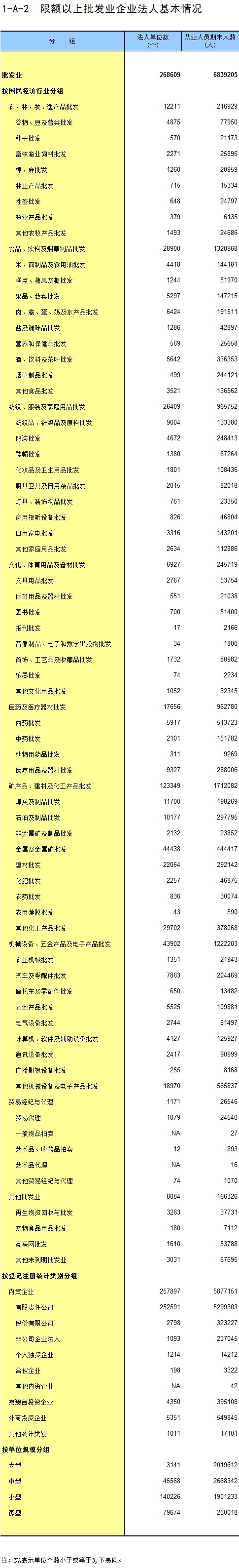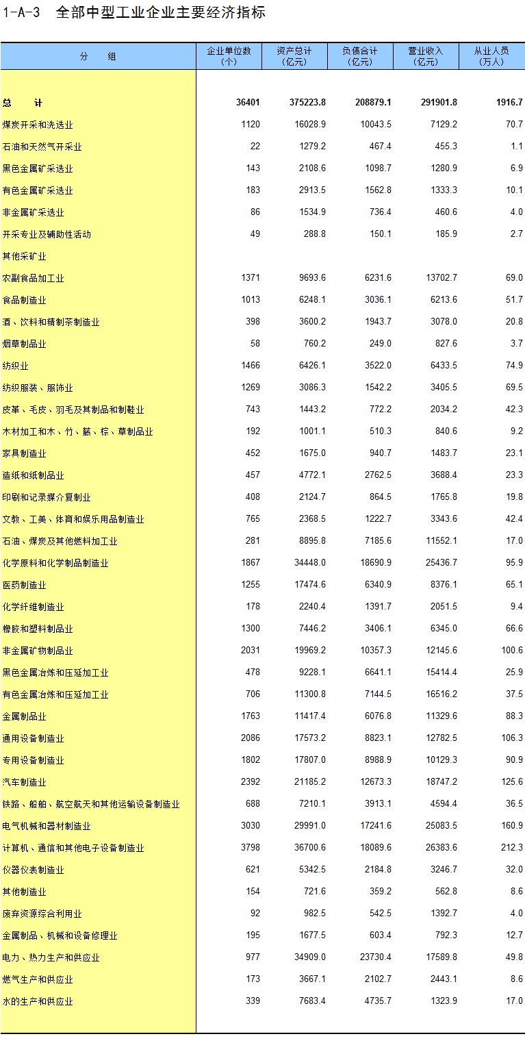 2-3 按行业(中类)分组的企业法人单位数及从业人员数