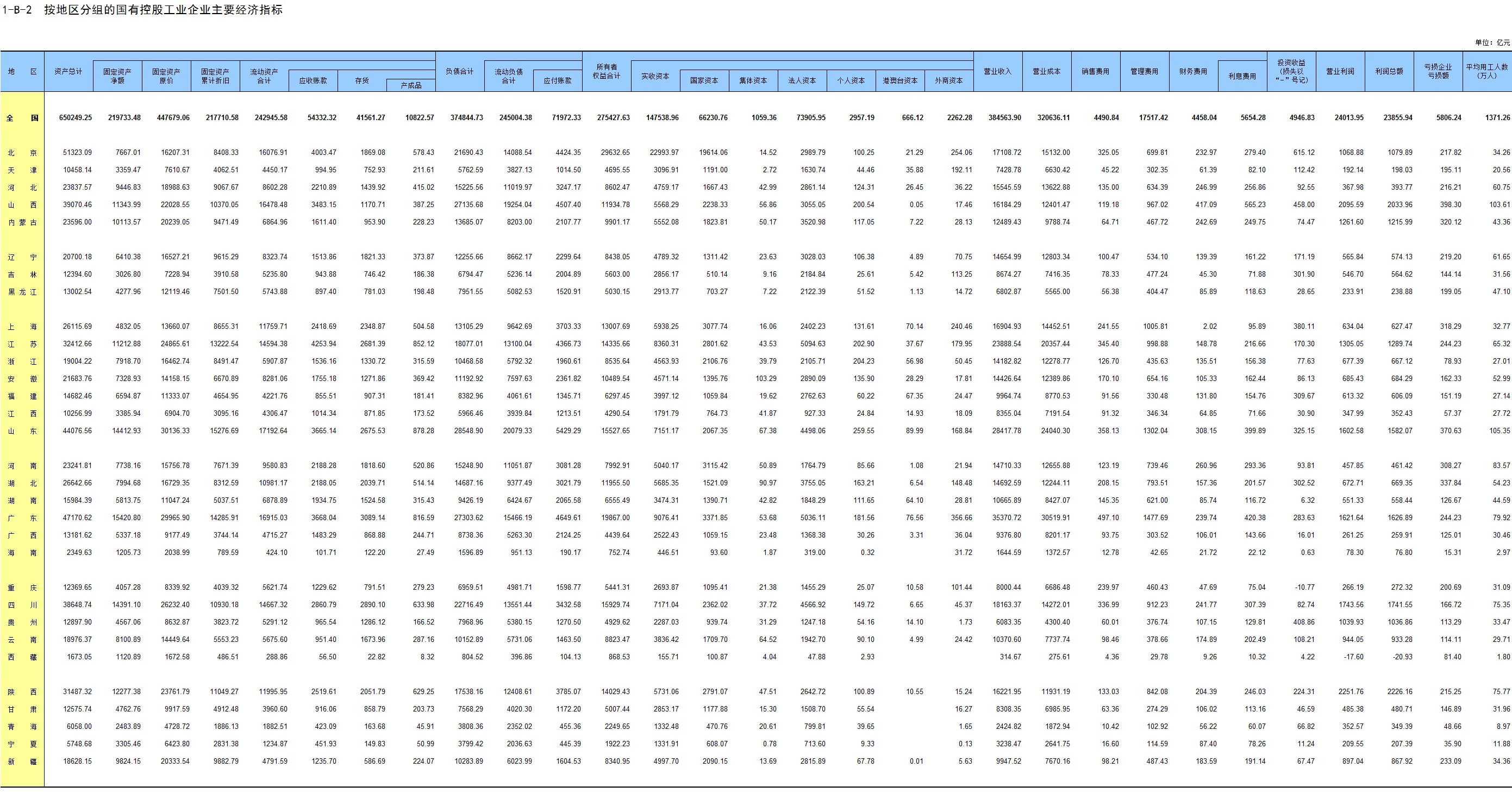2-33 按行业(大类)、地区分组的国有控股企业法人单位从业人员数