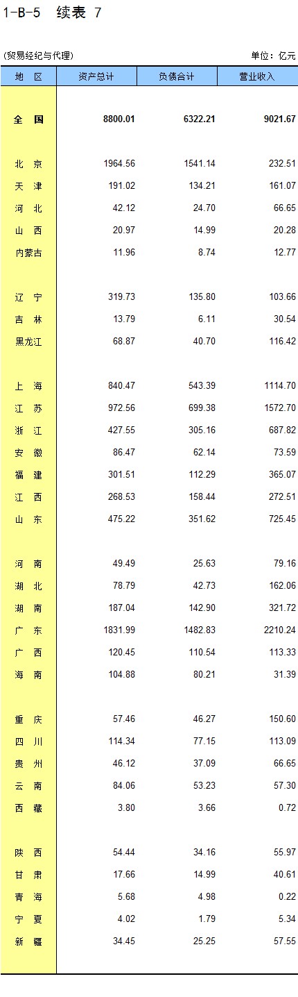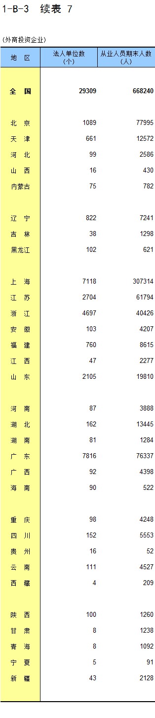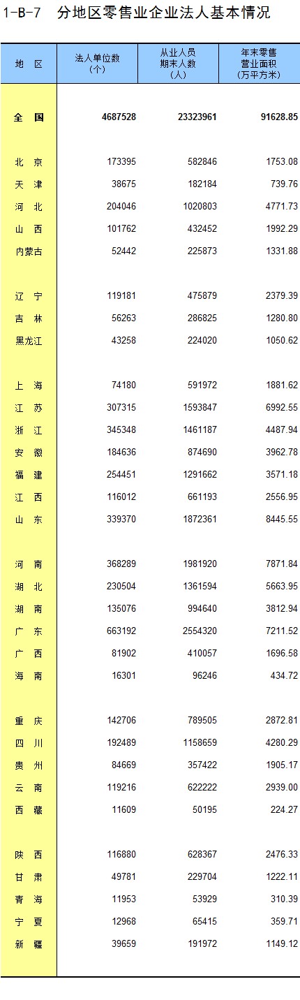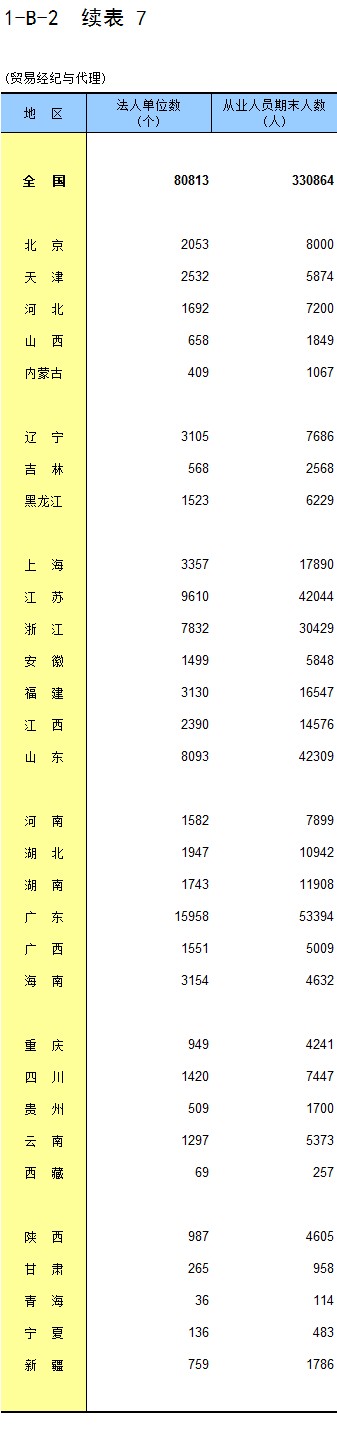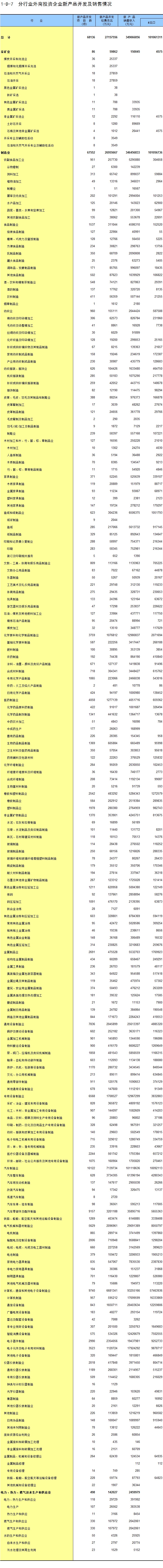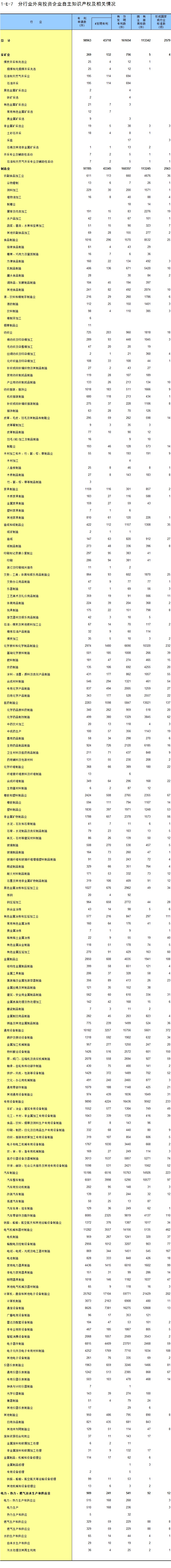 1-7 按行业(大类)、地区分组的法人单位数