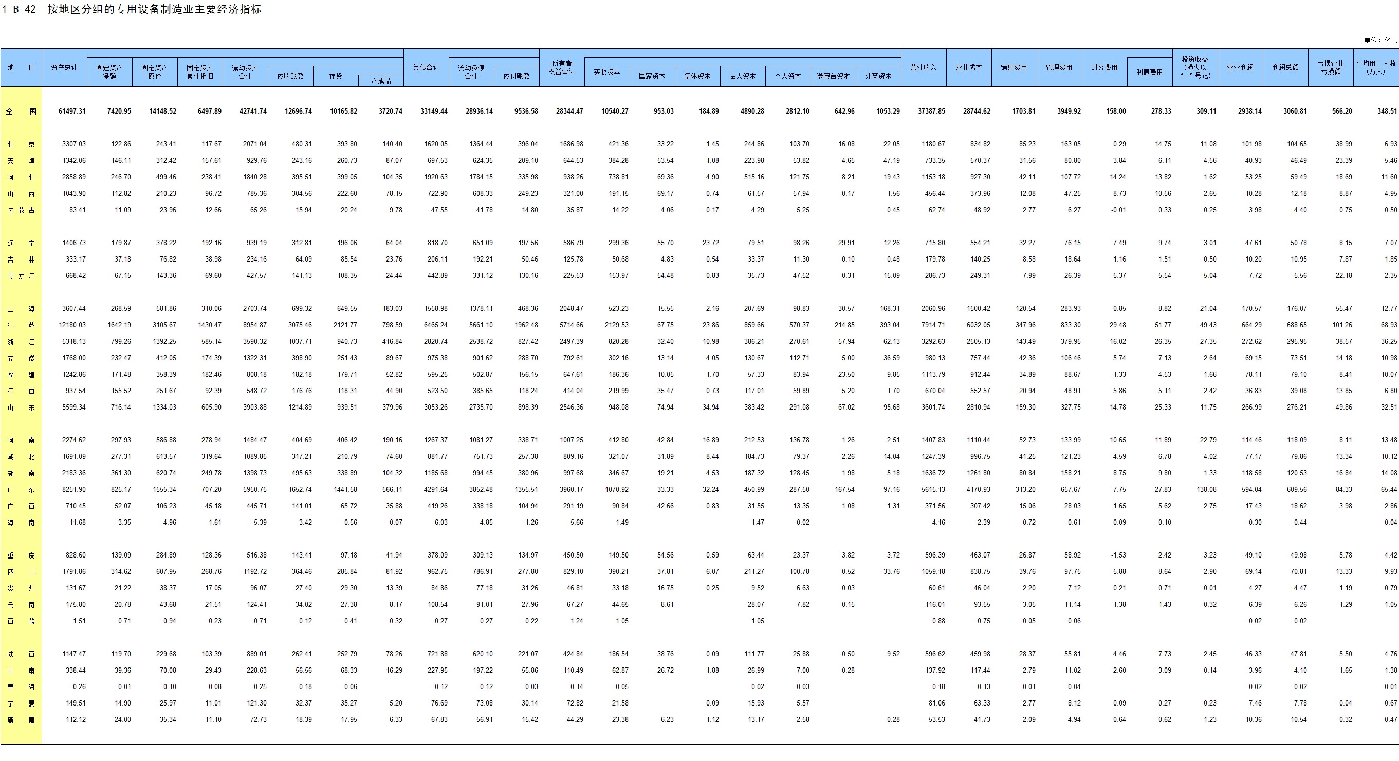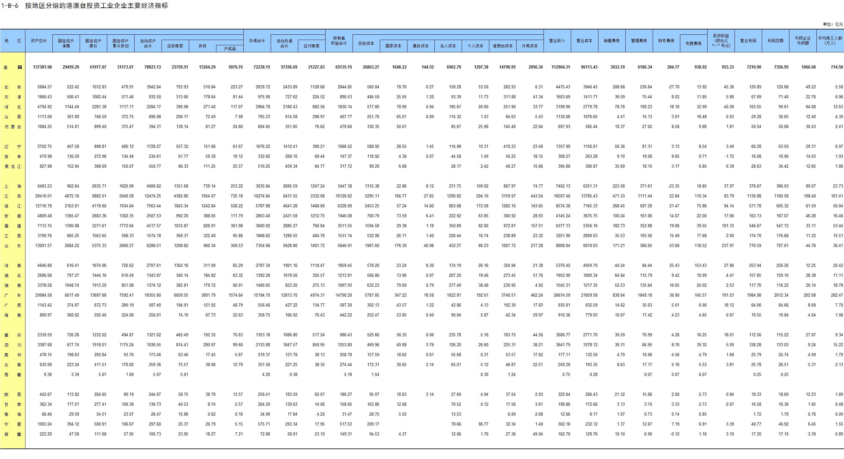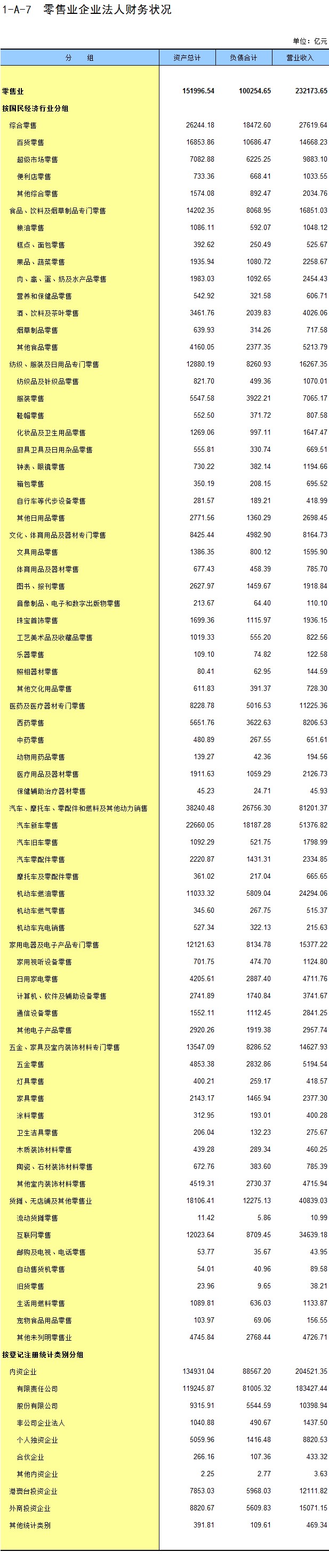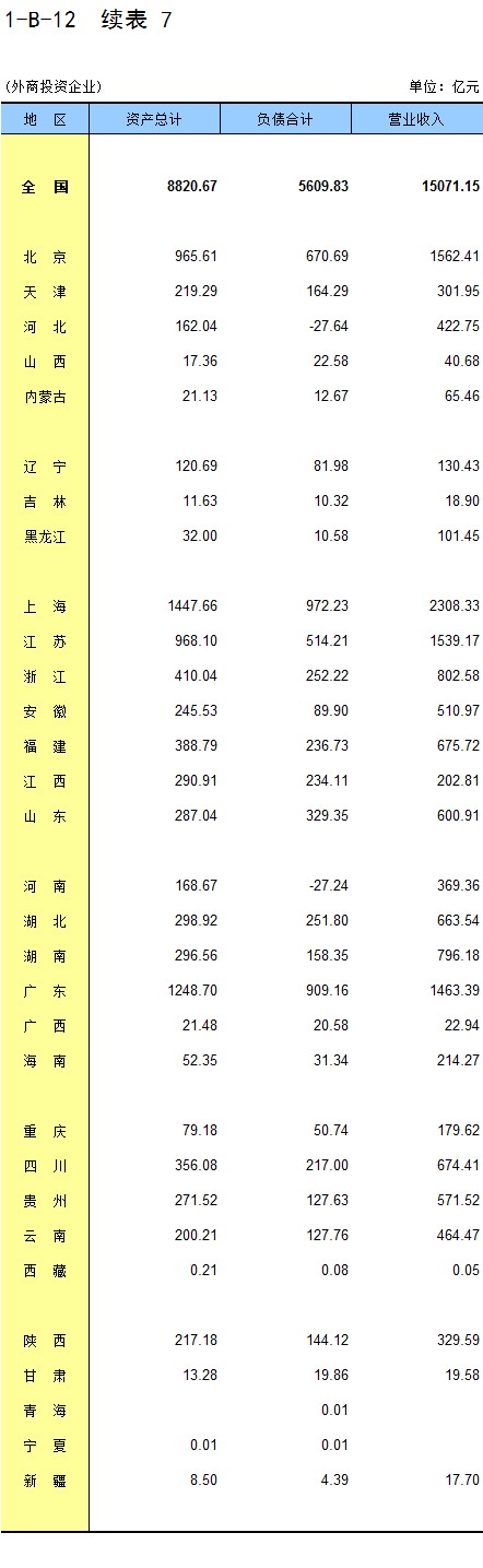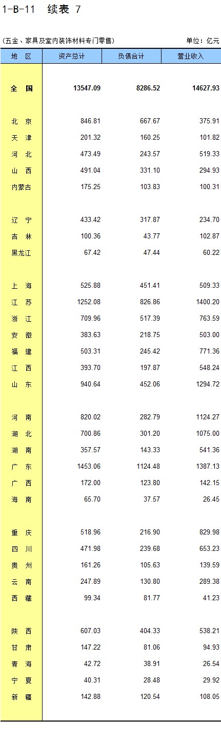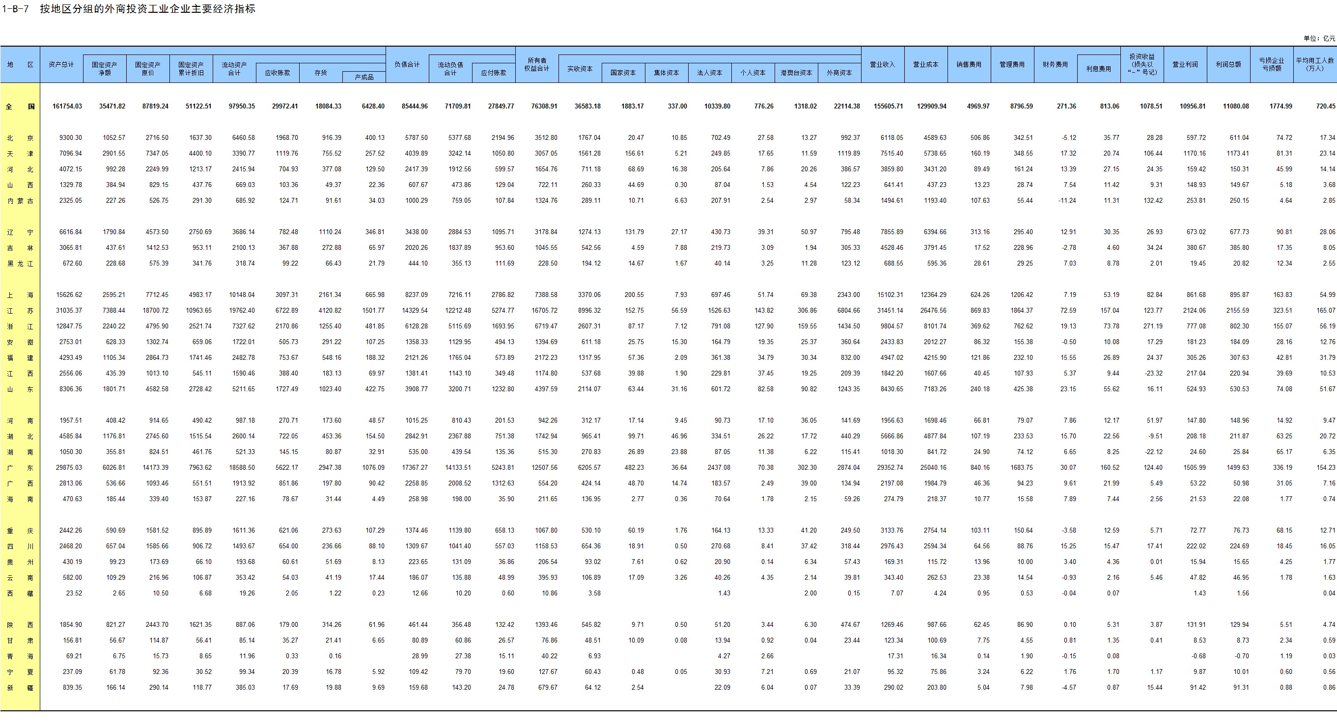 1-7 按行业(大类)、地区分组的法人单位数