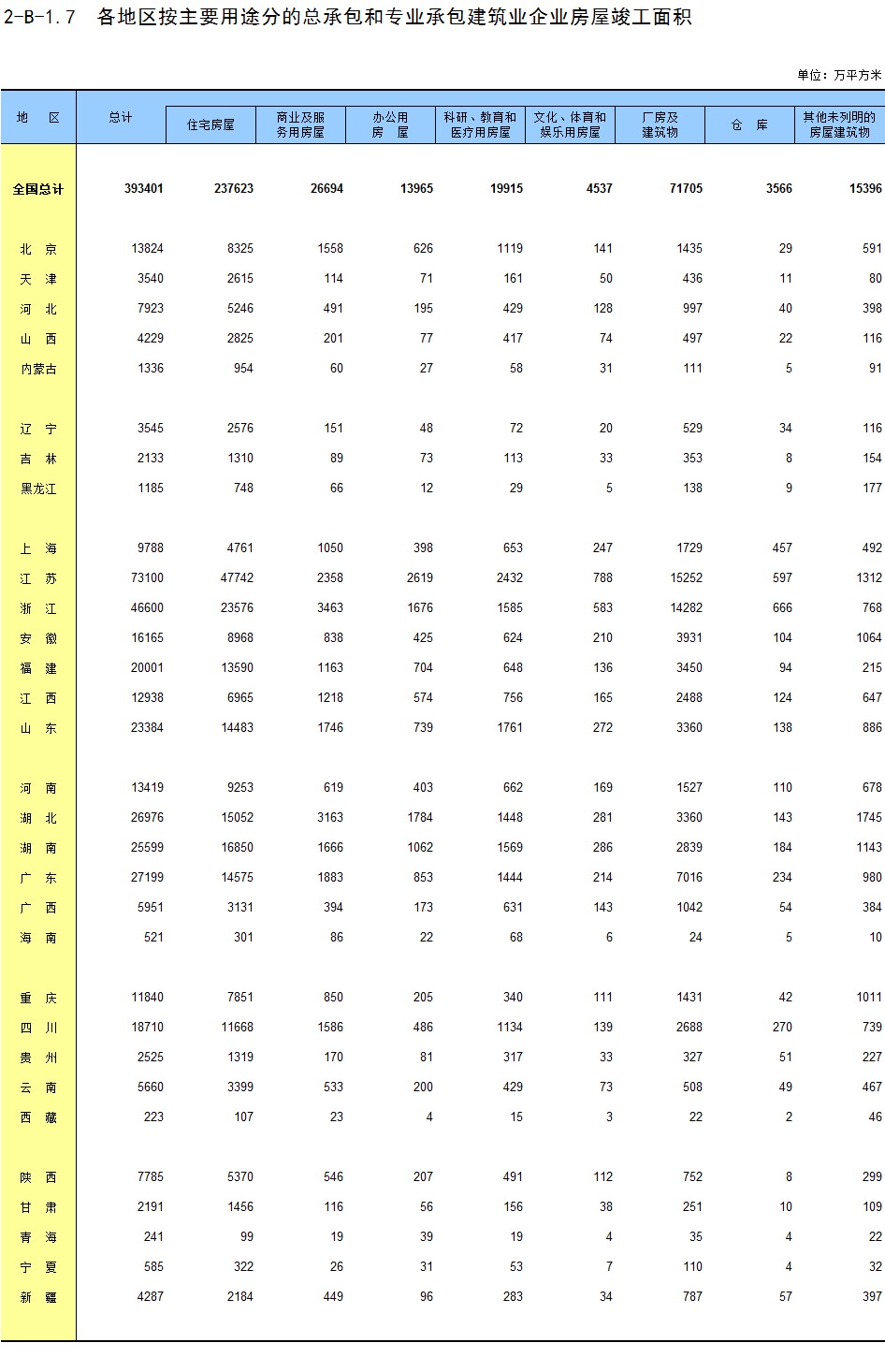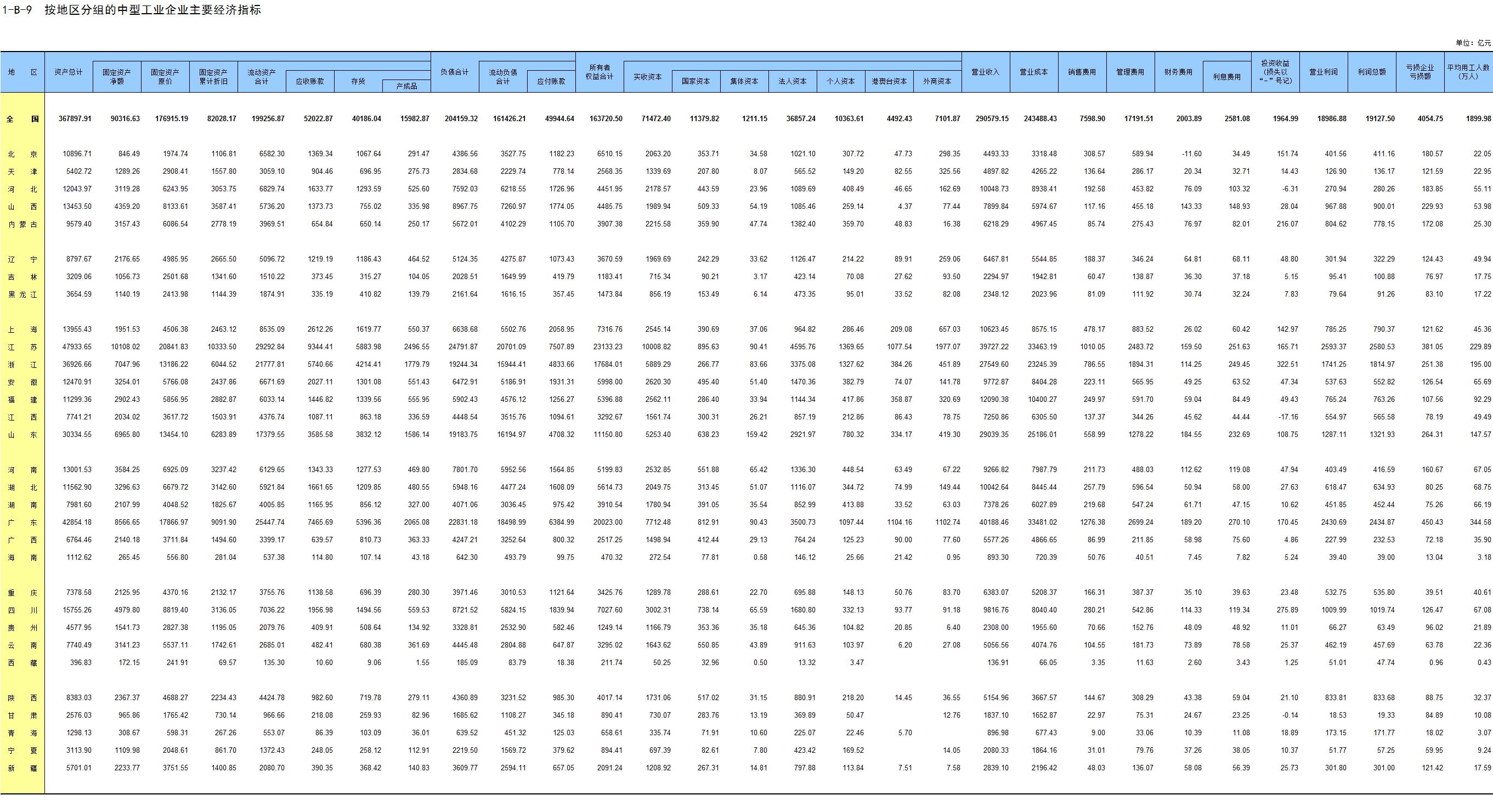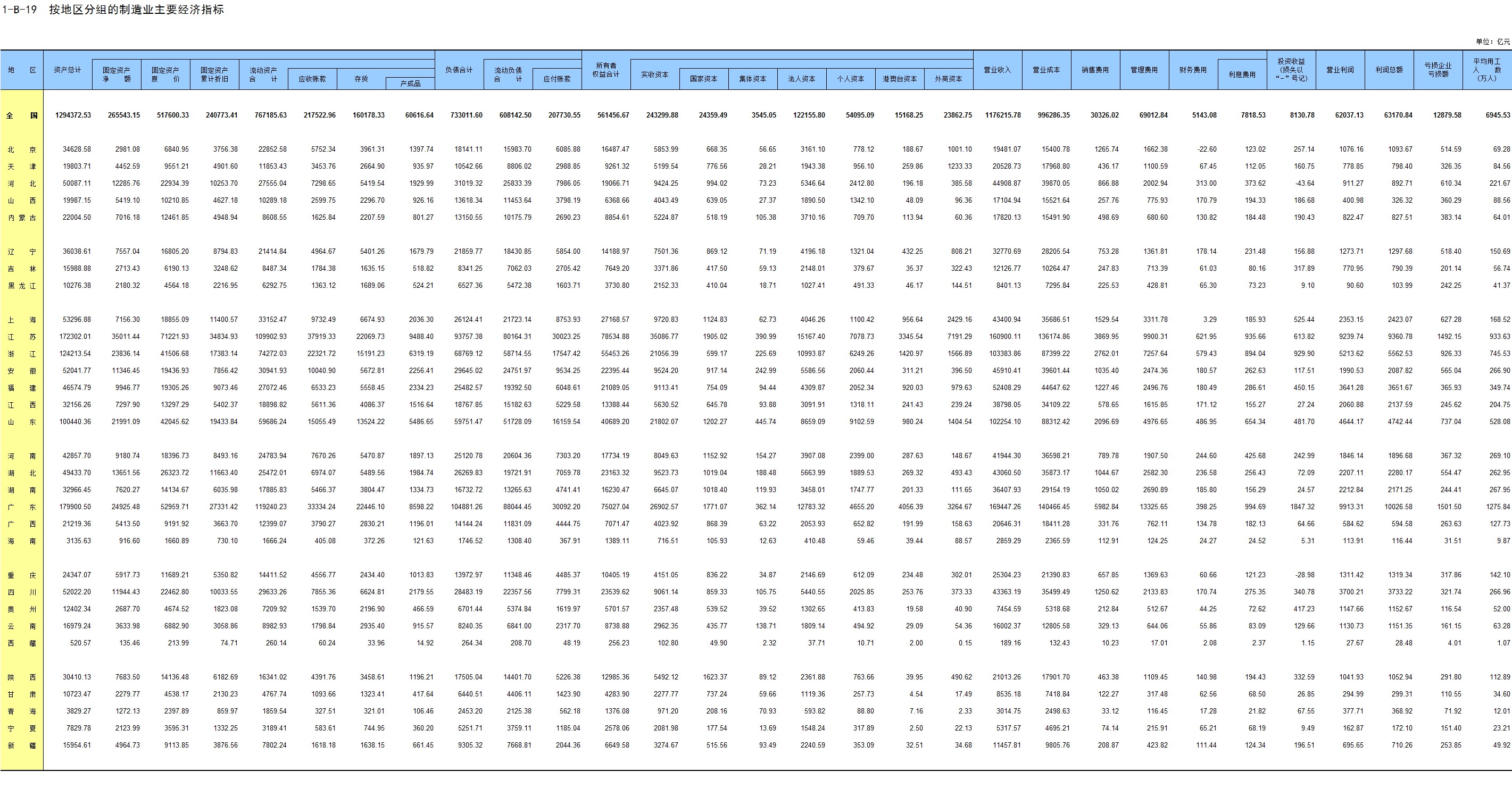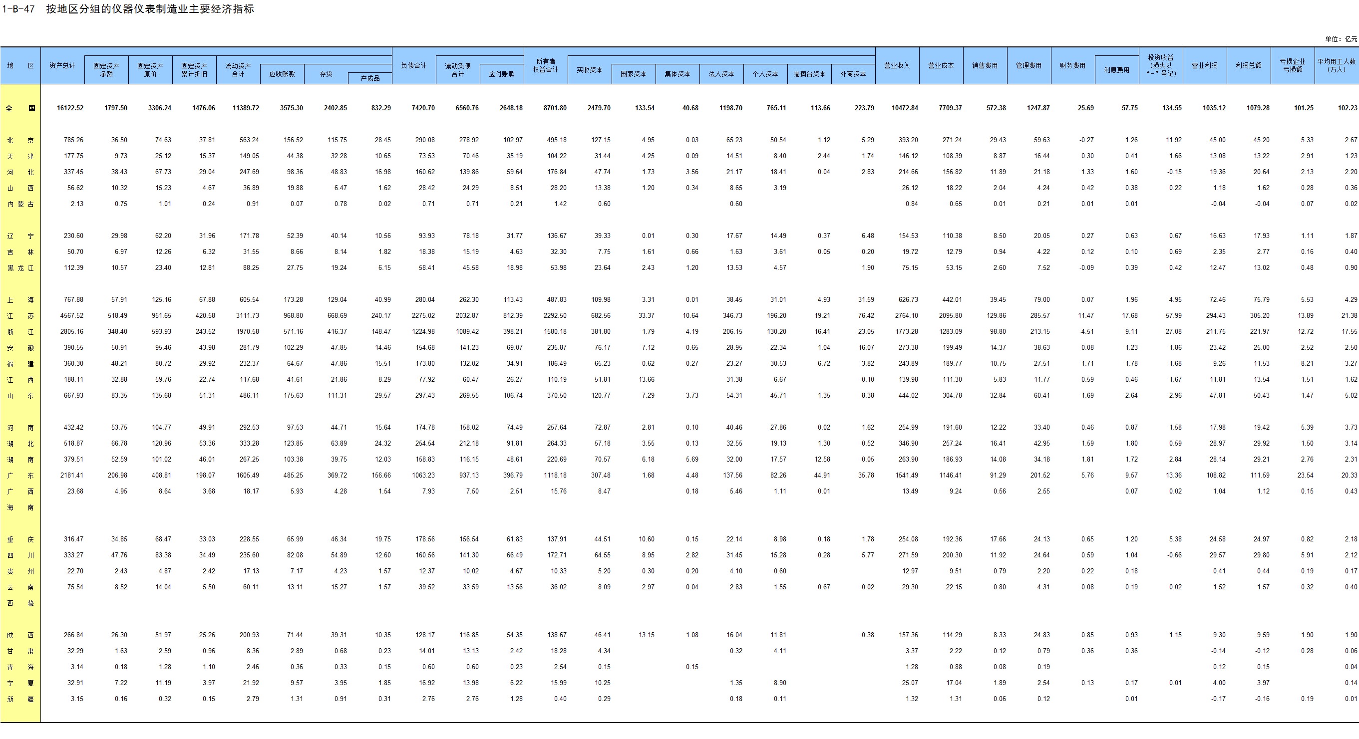 1-7 按行业(大类)、地区分组的法人单位数