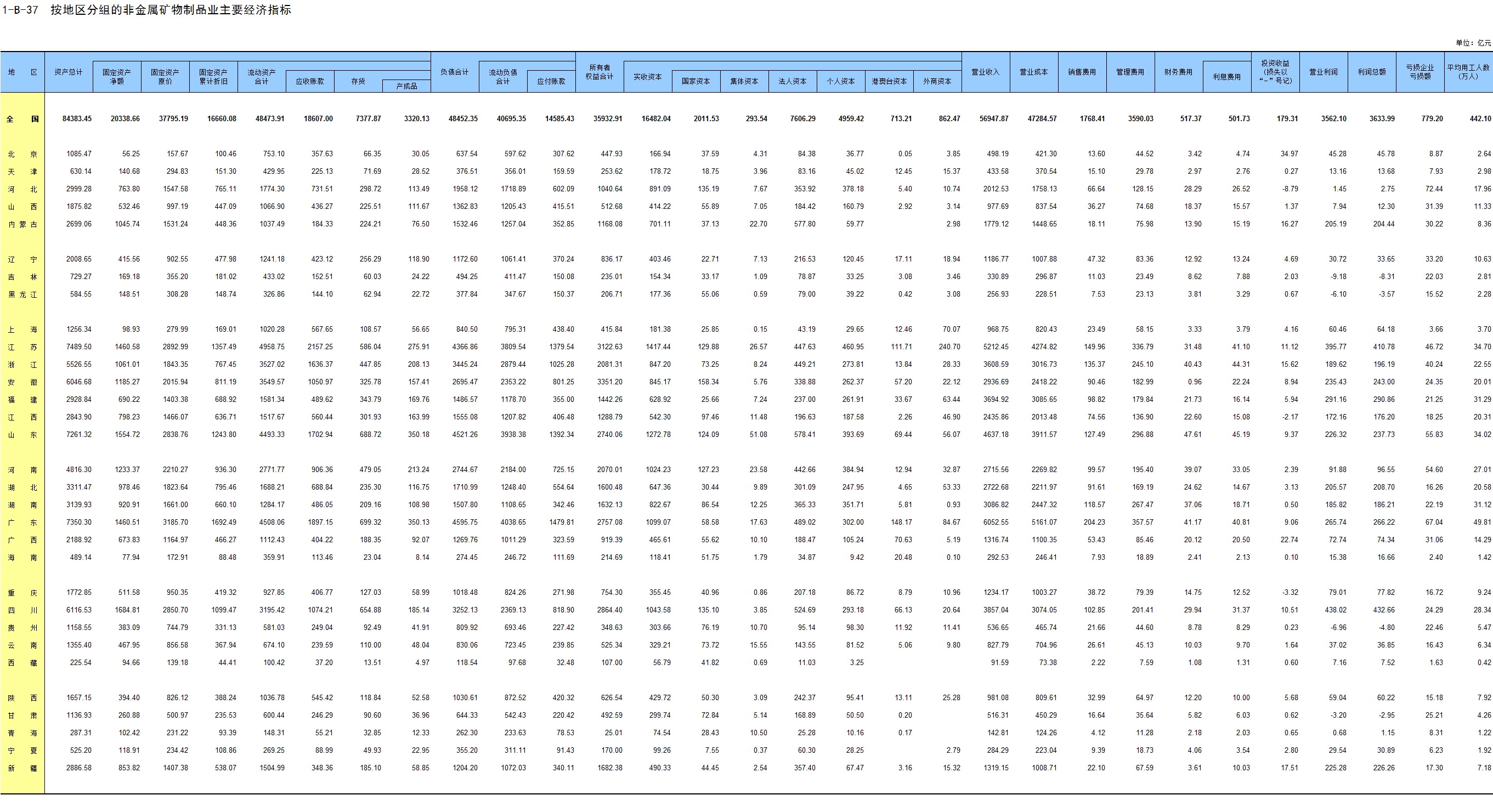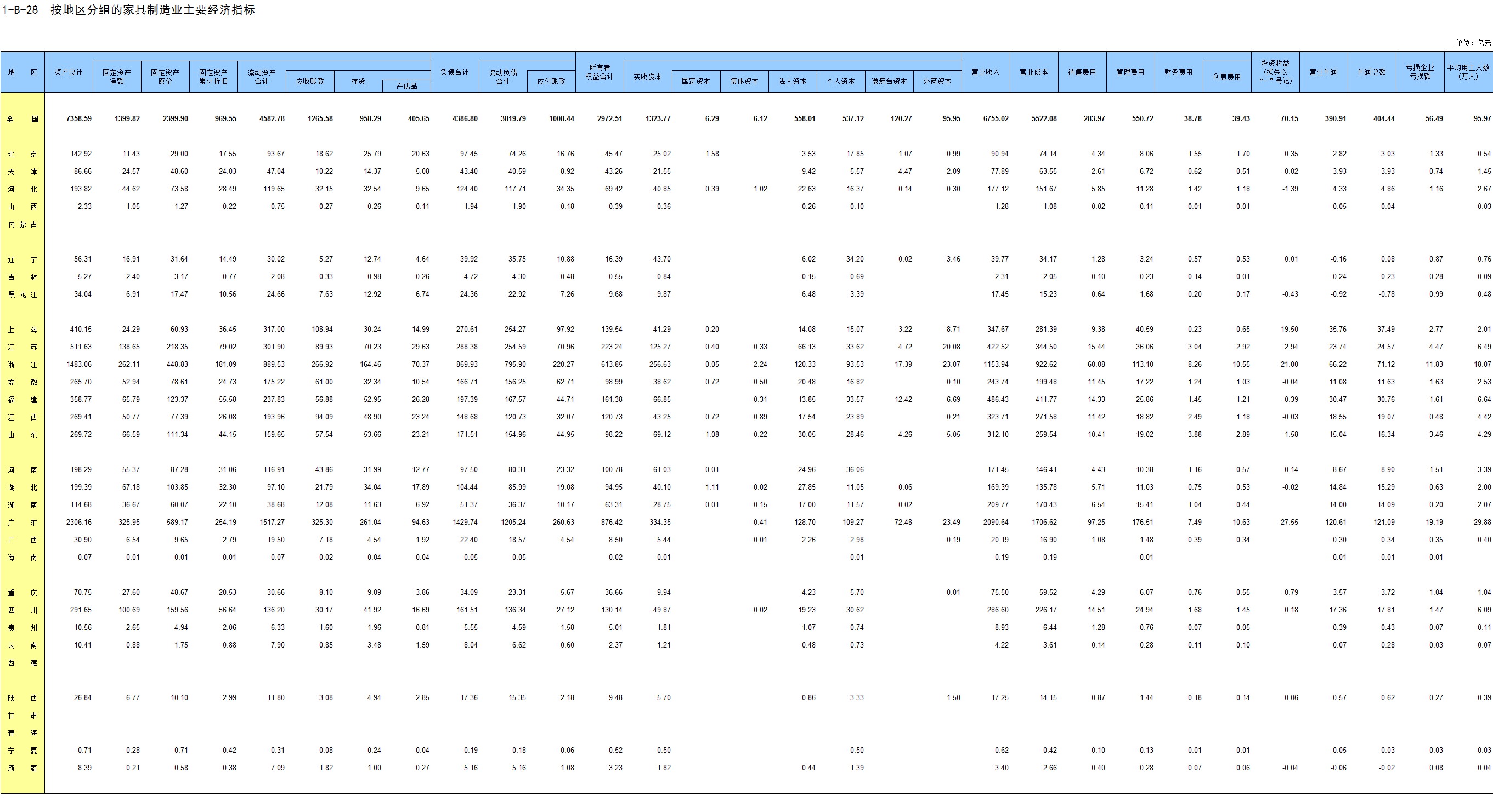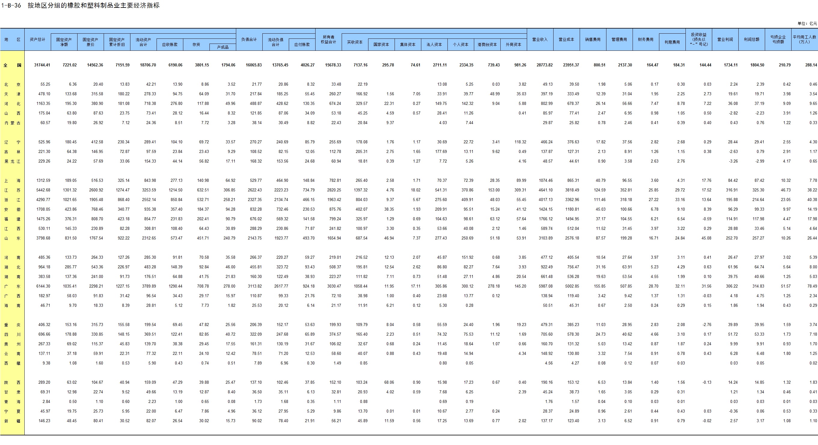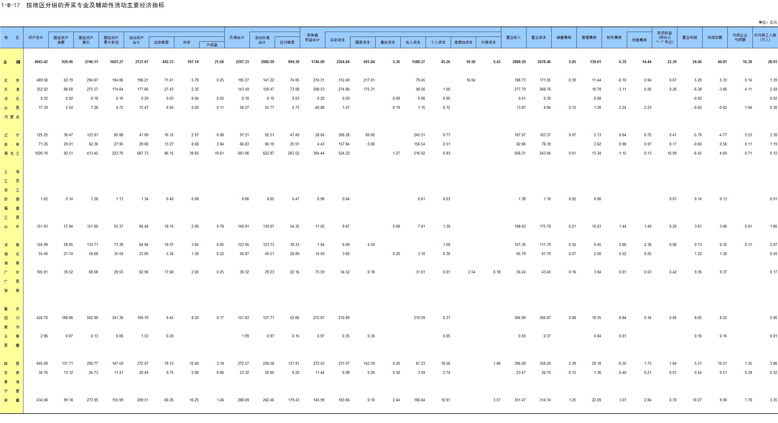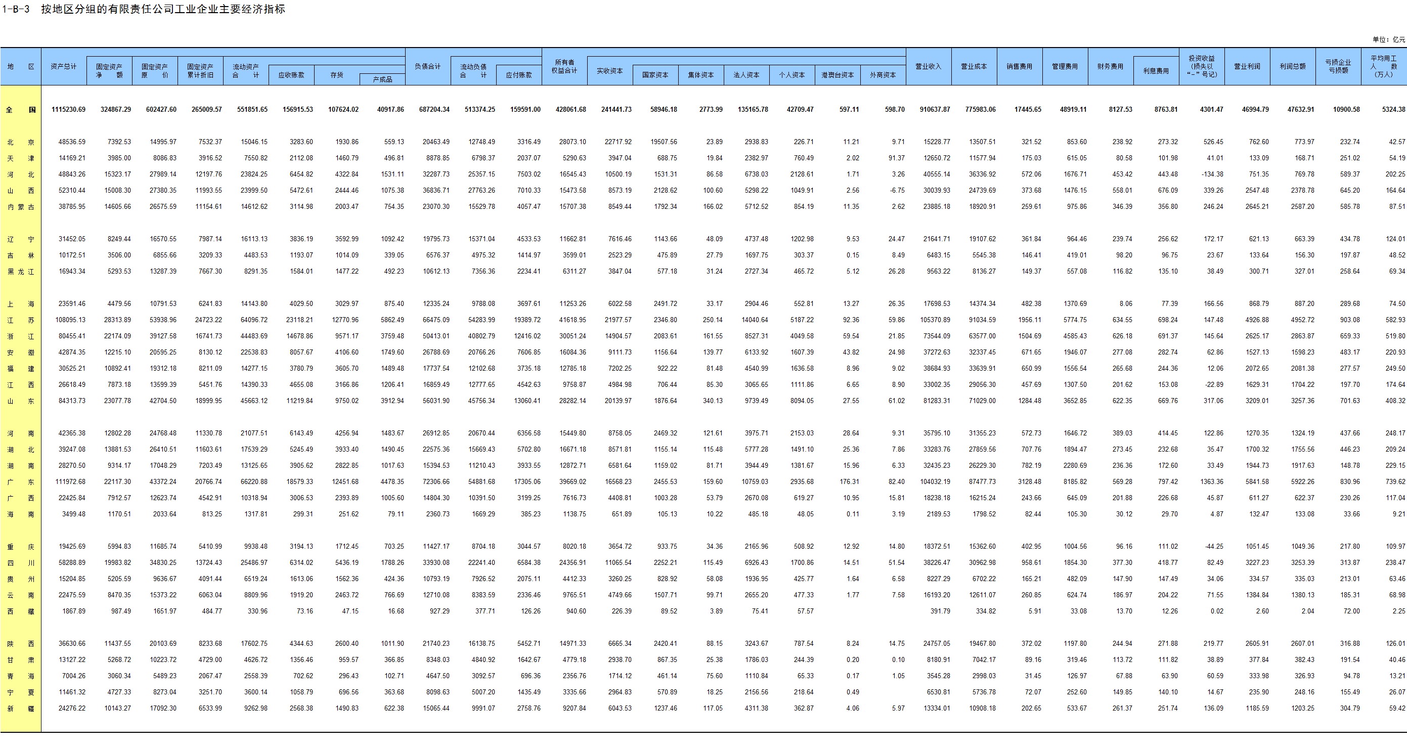 1-7 按行业(大类)、地区分组的法人单位数