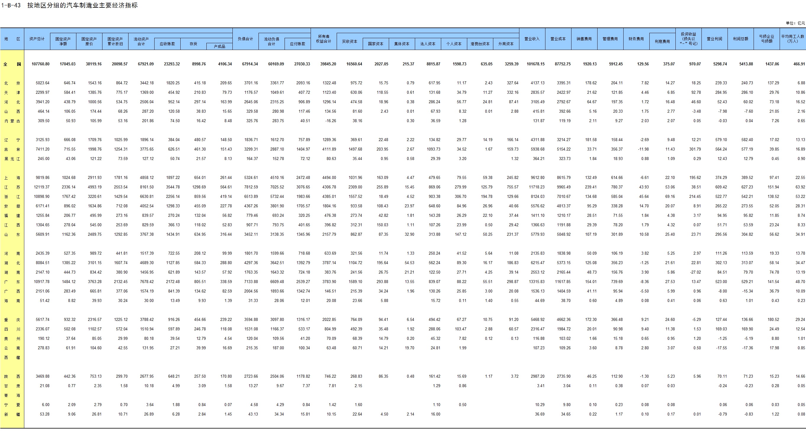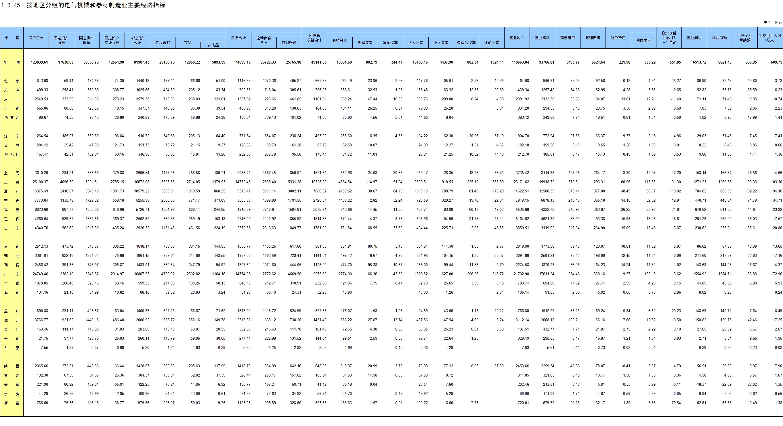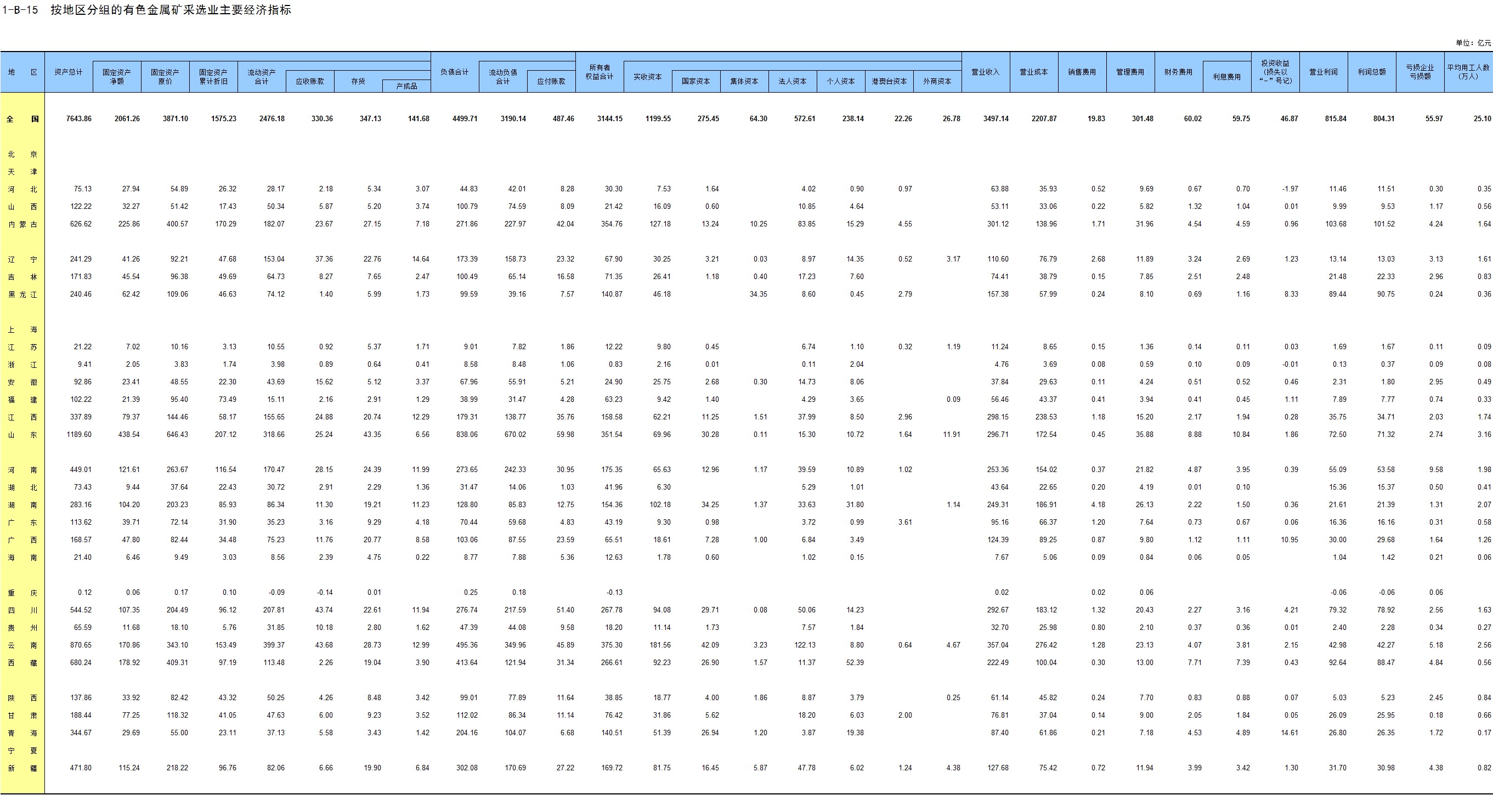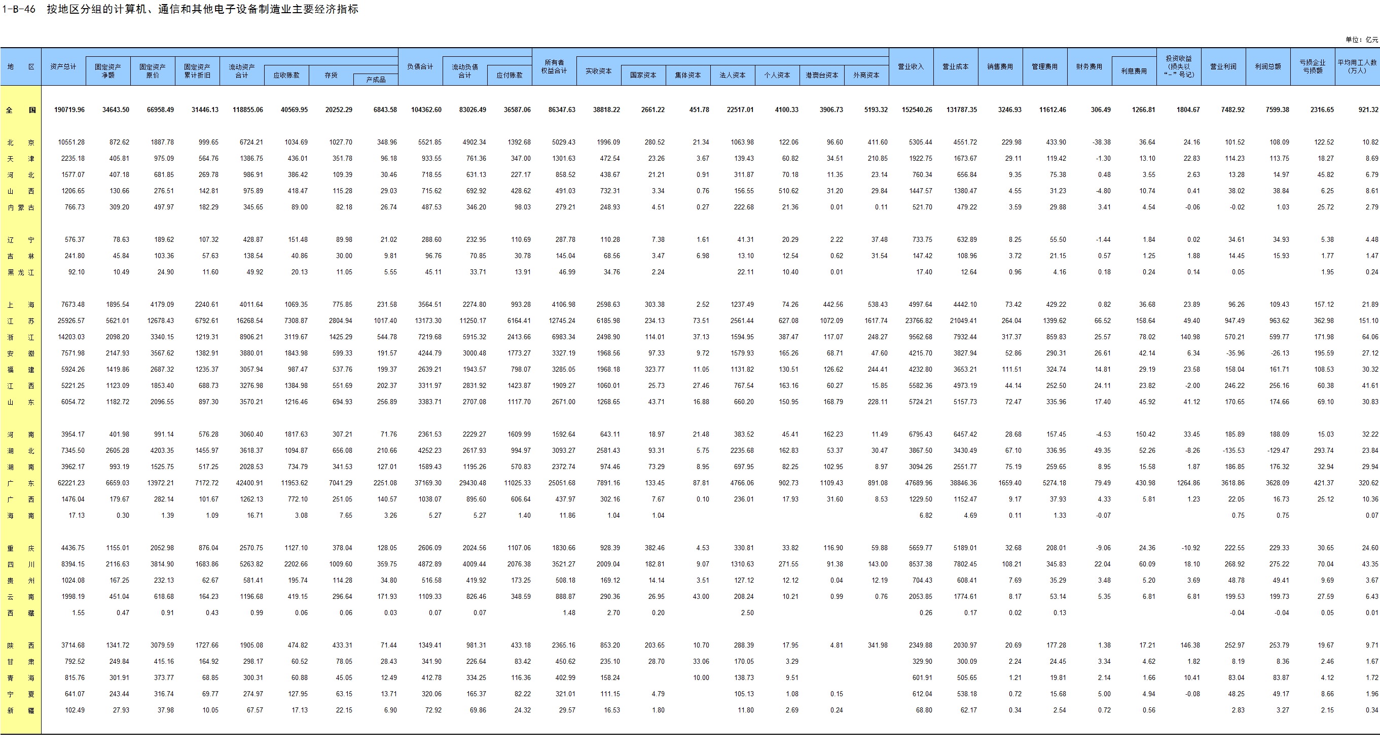1-7 按行业(大类)、地区分组的法人单位数