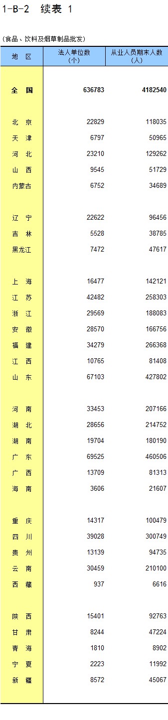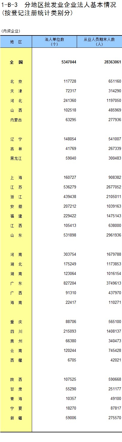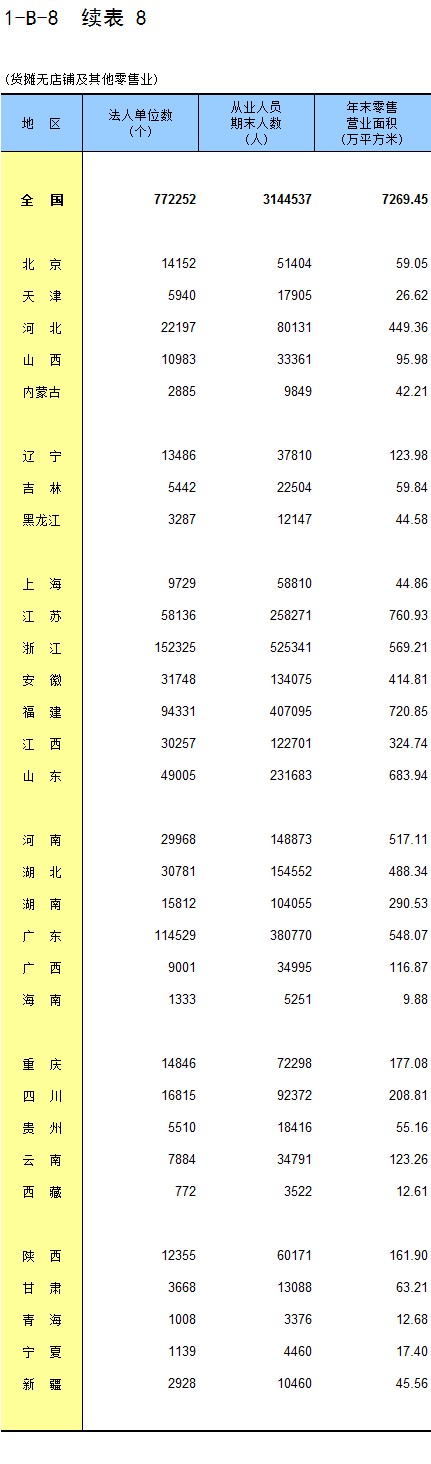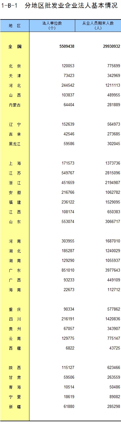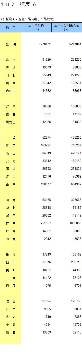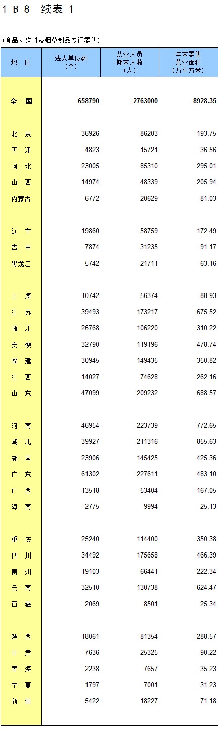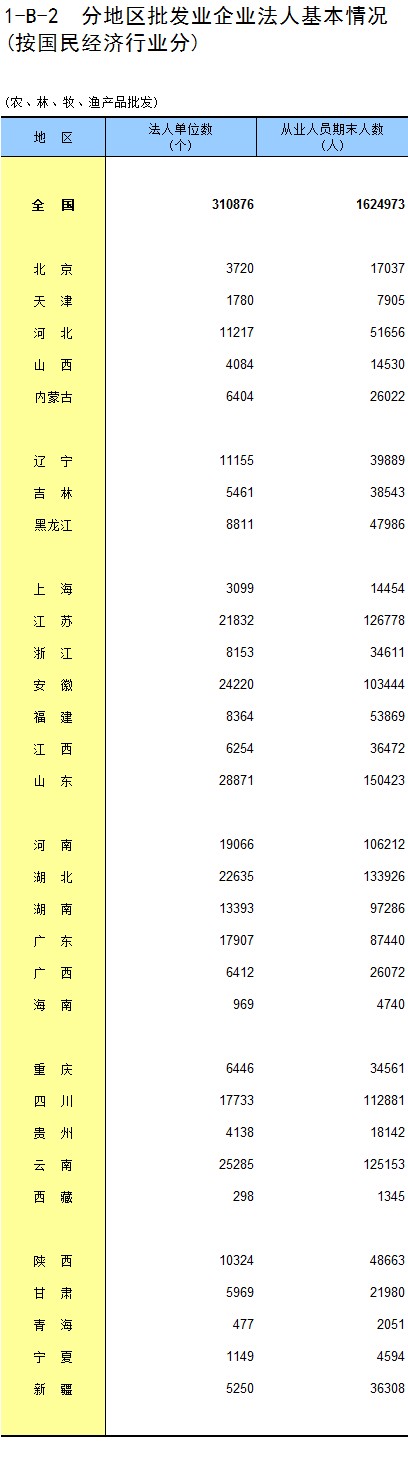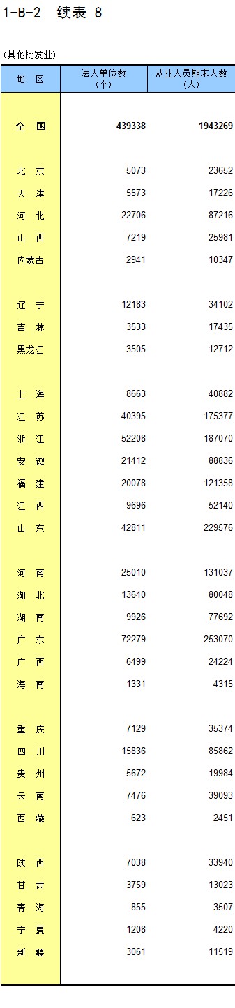 1-8 按行业(大类)、地区分组的法人单位从业人员数
