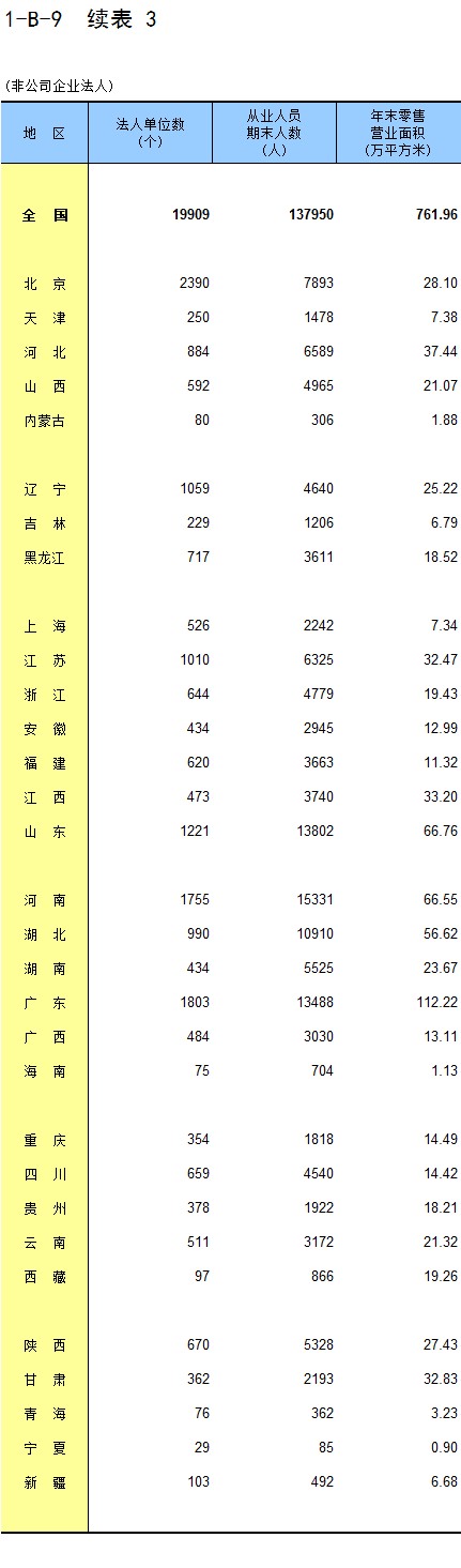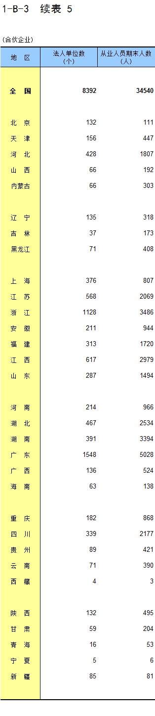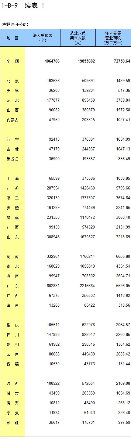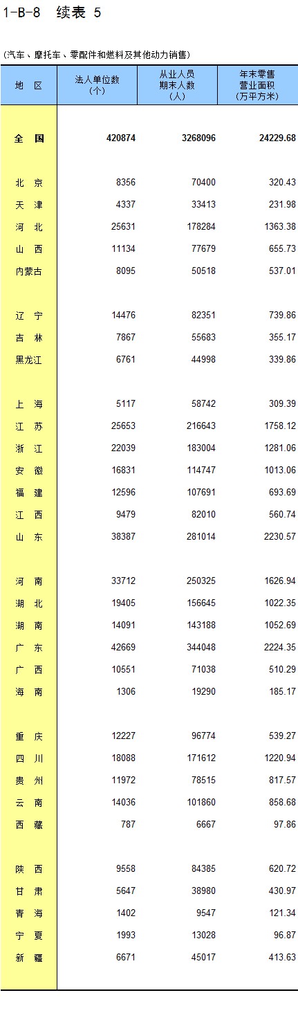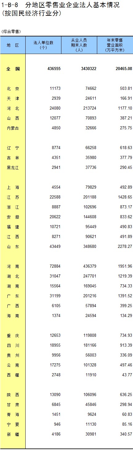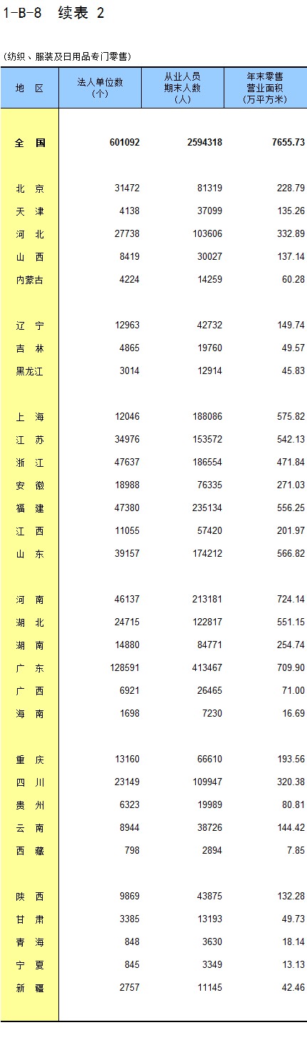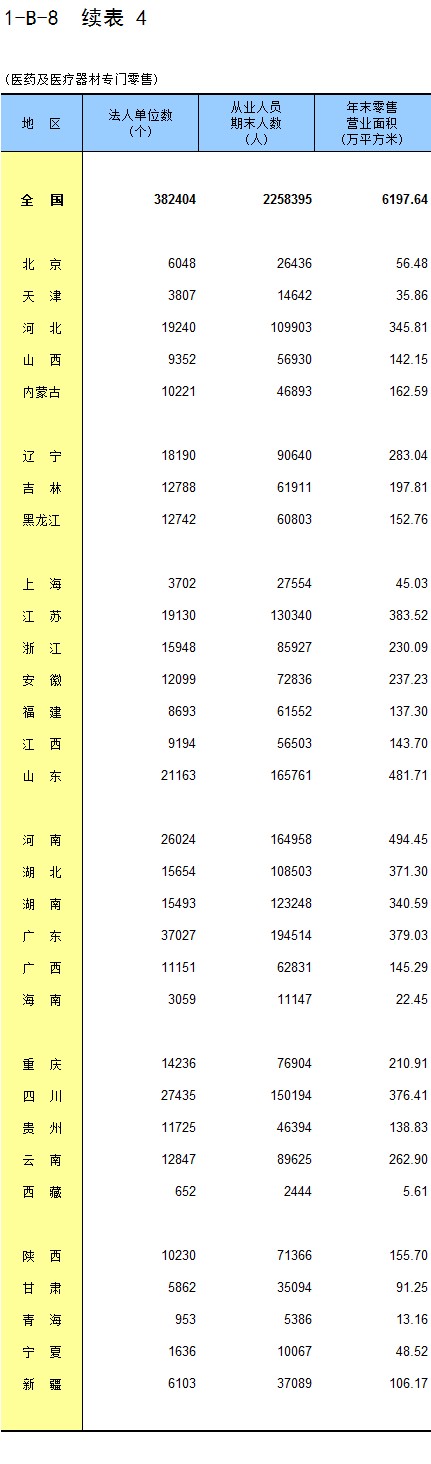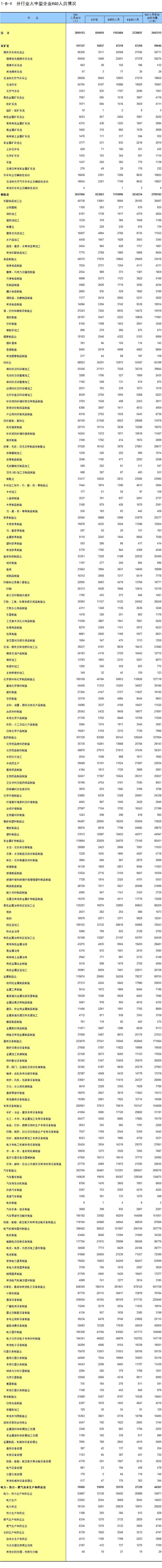 1-8 按行业(大类)、地区分组的法人单位从业人员数