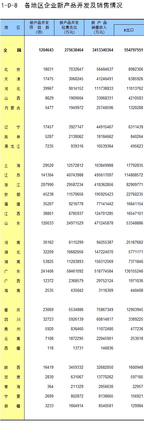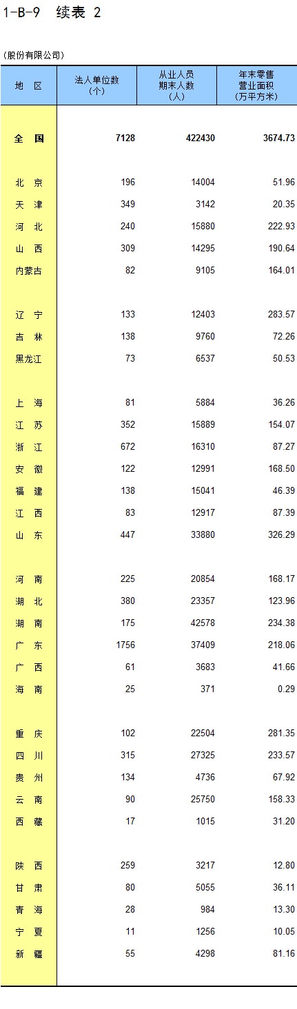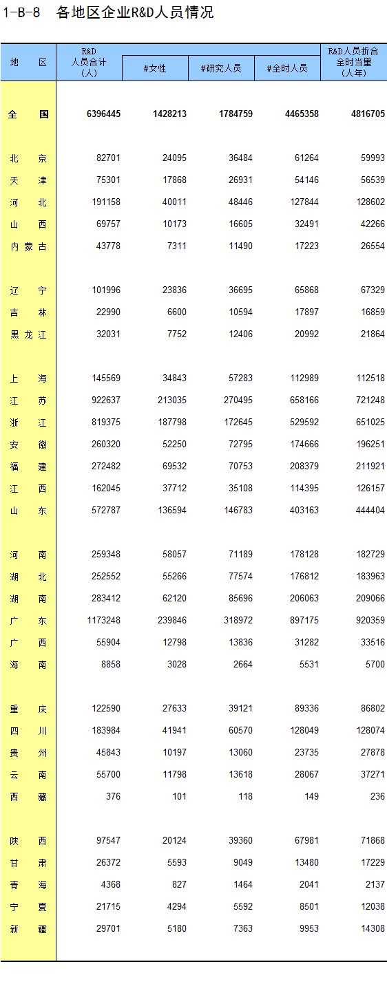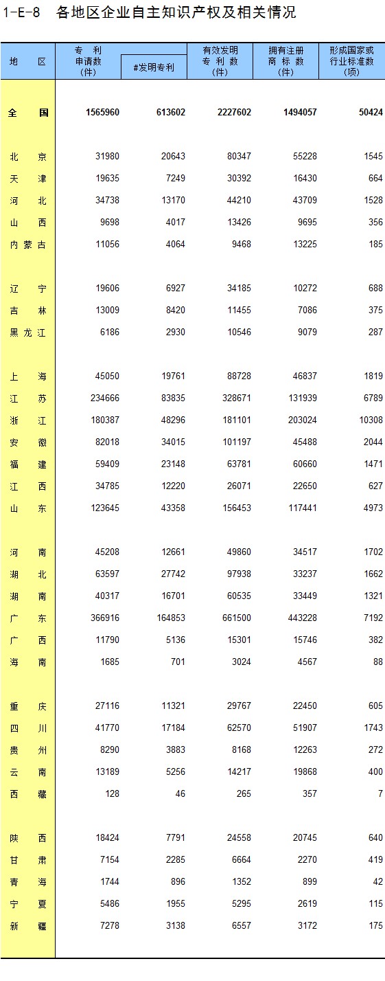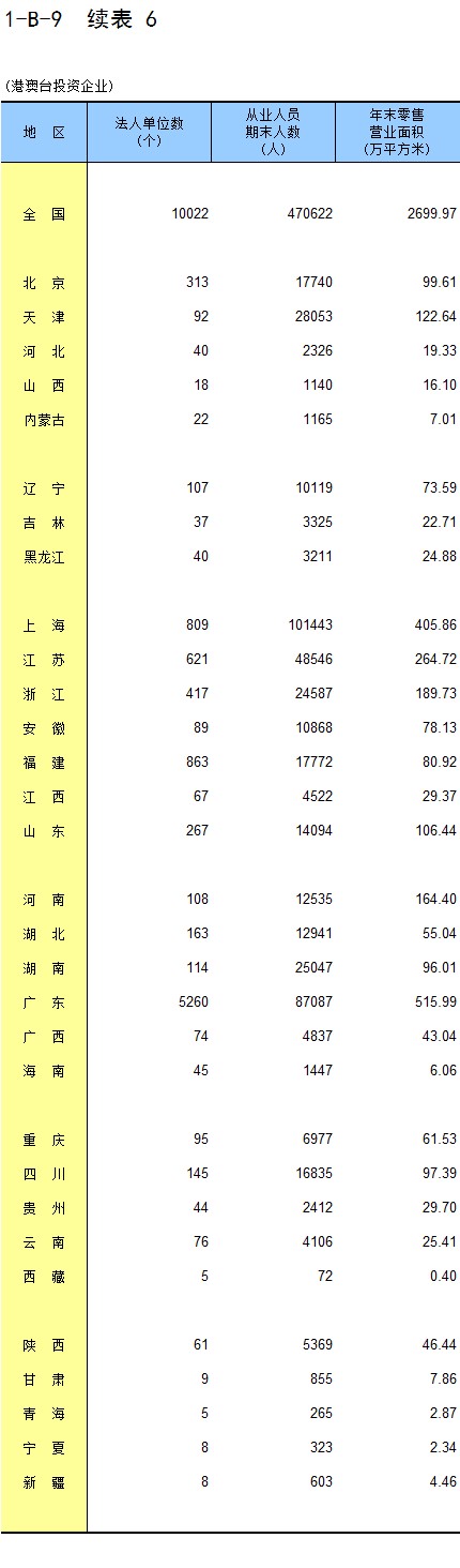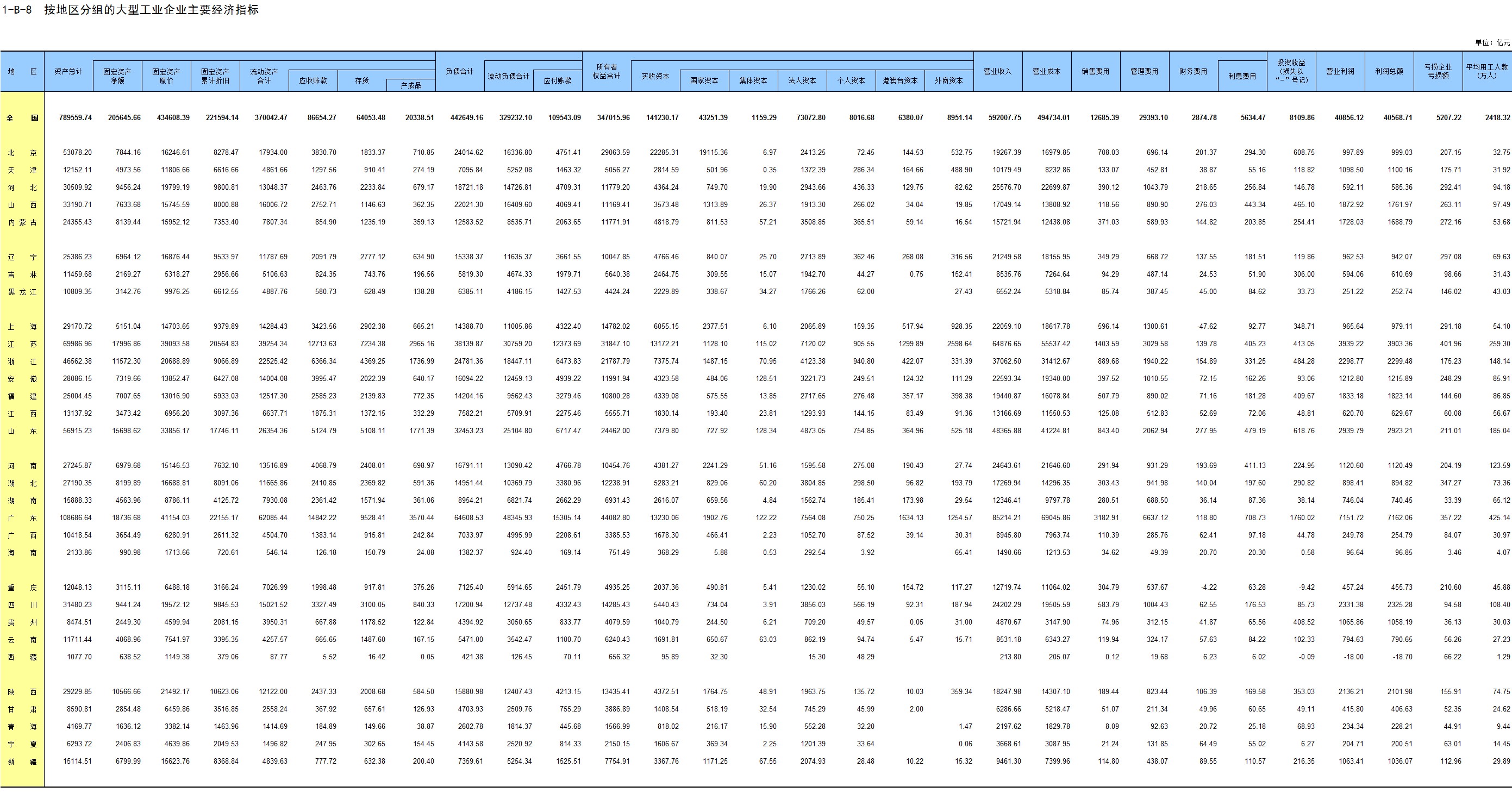 1-8 按行业(大类)、地区分组的法人单位从业人员数