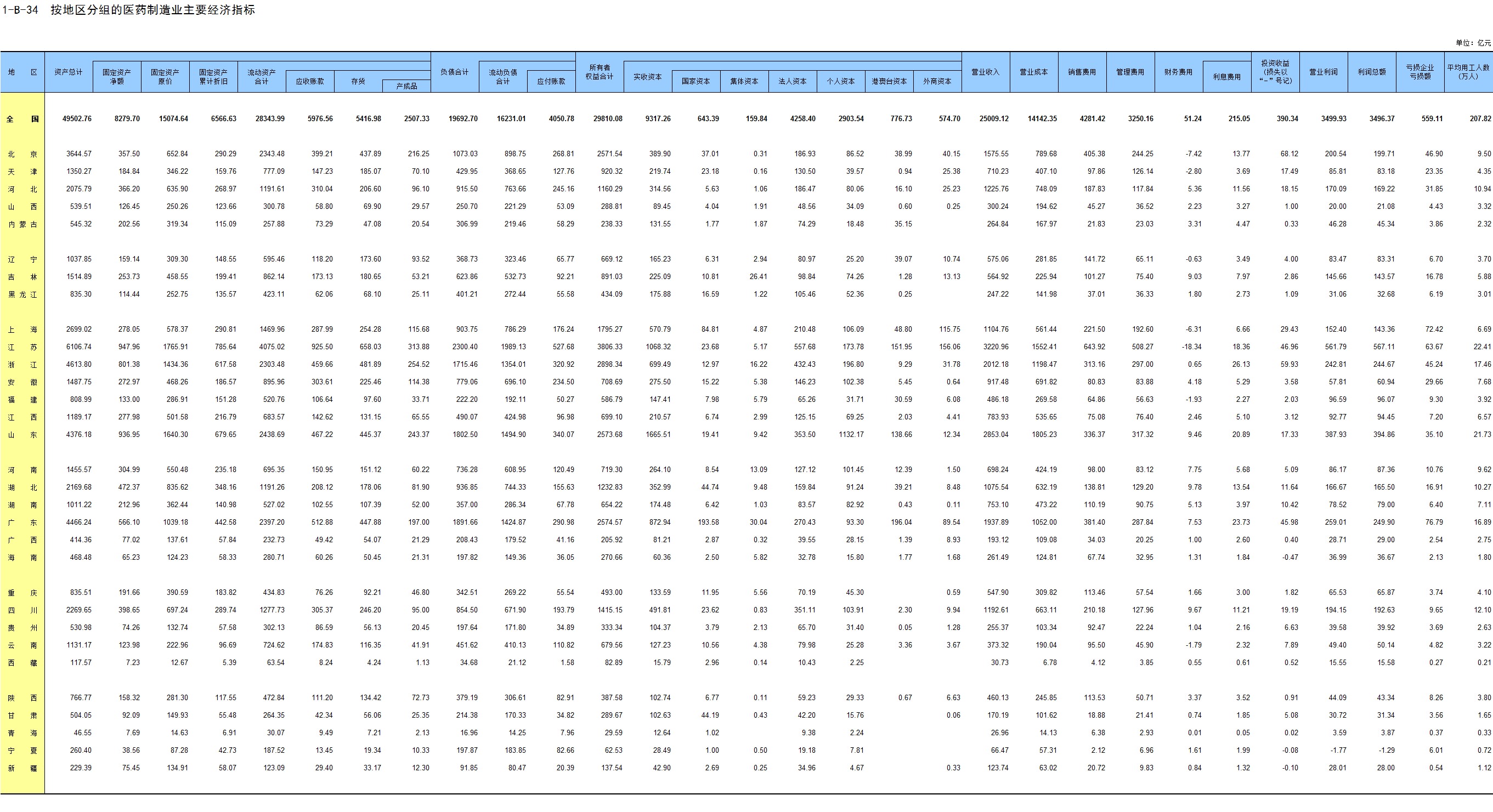 2-34 按行业(大类)、地区分组的小微企业法人单位数